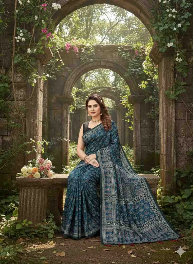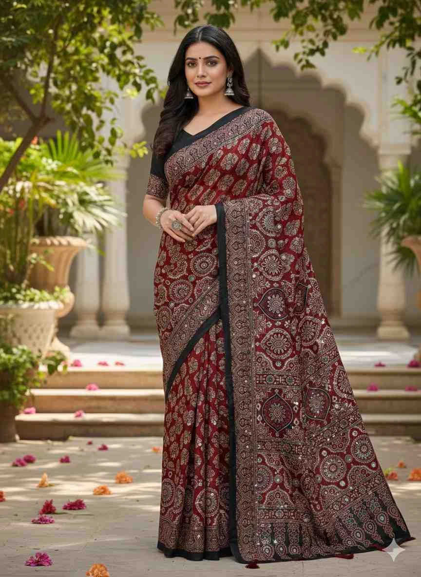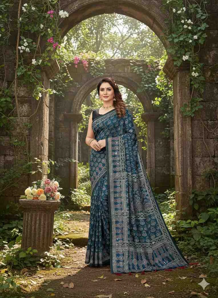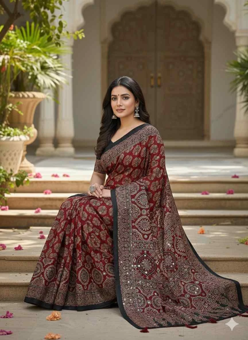 Work Ajrarakh Digital Print with Real Mirror Work
