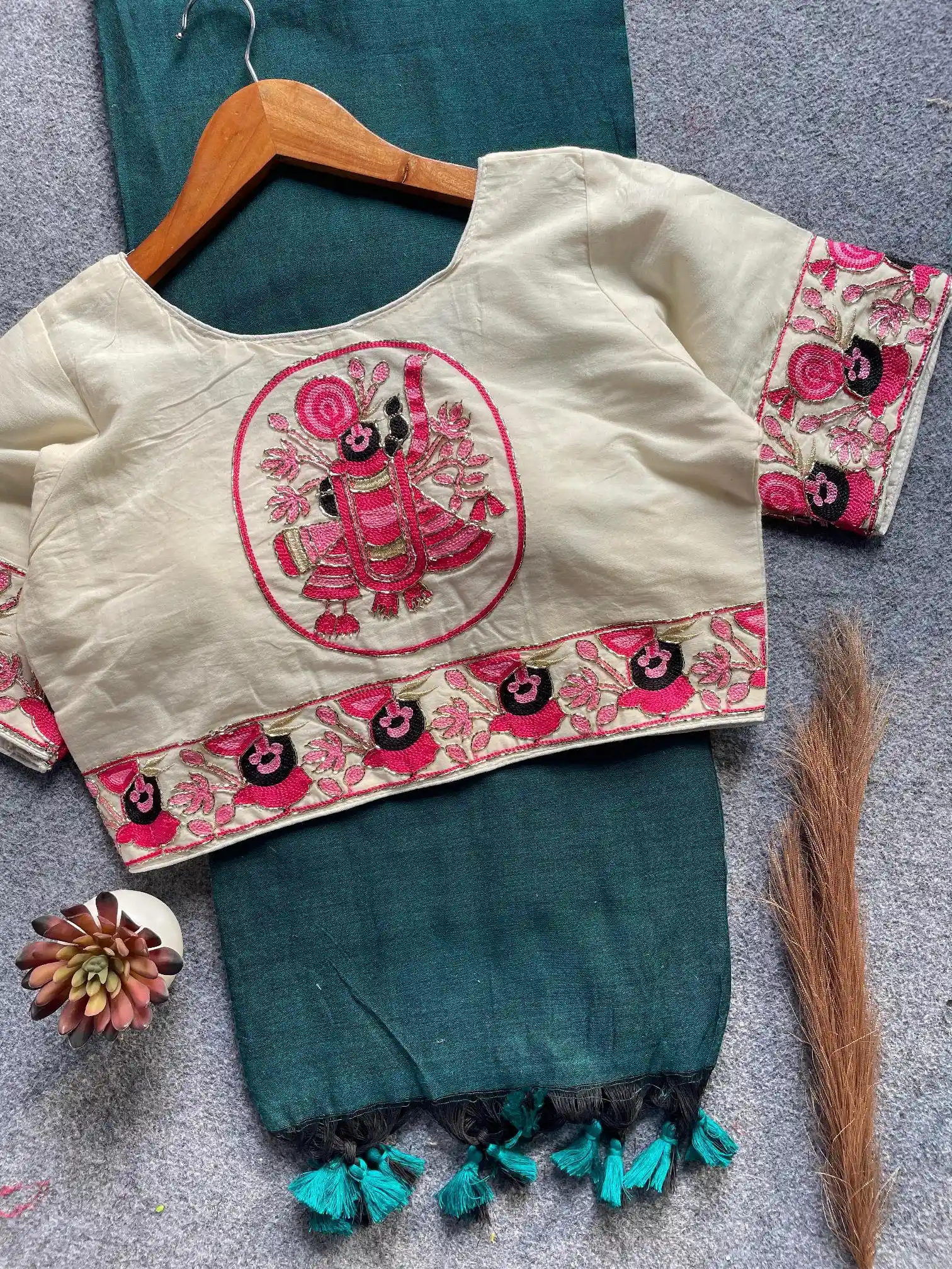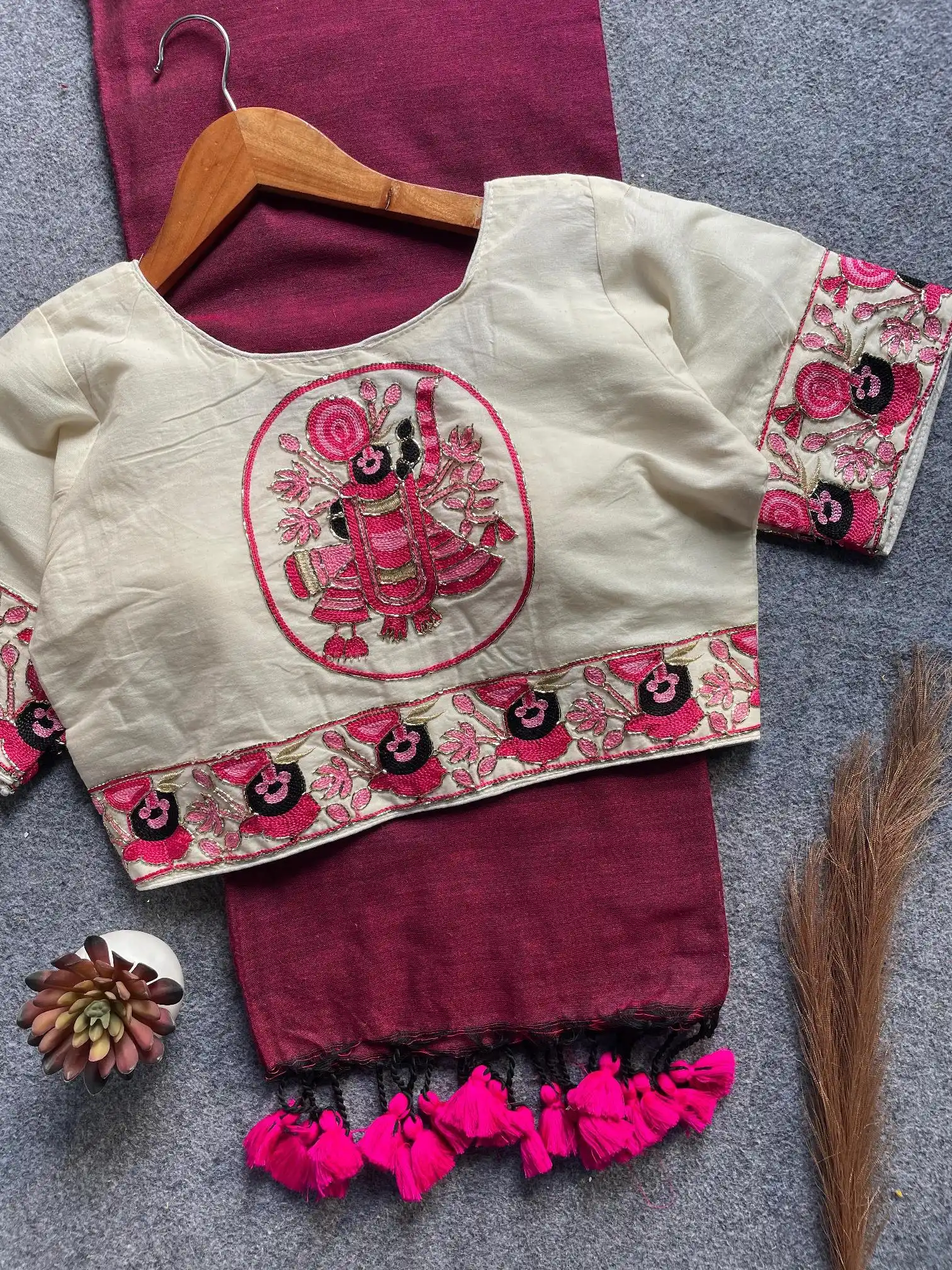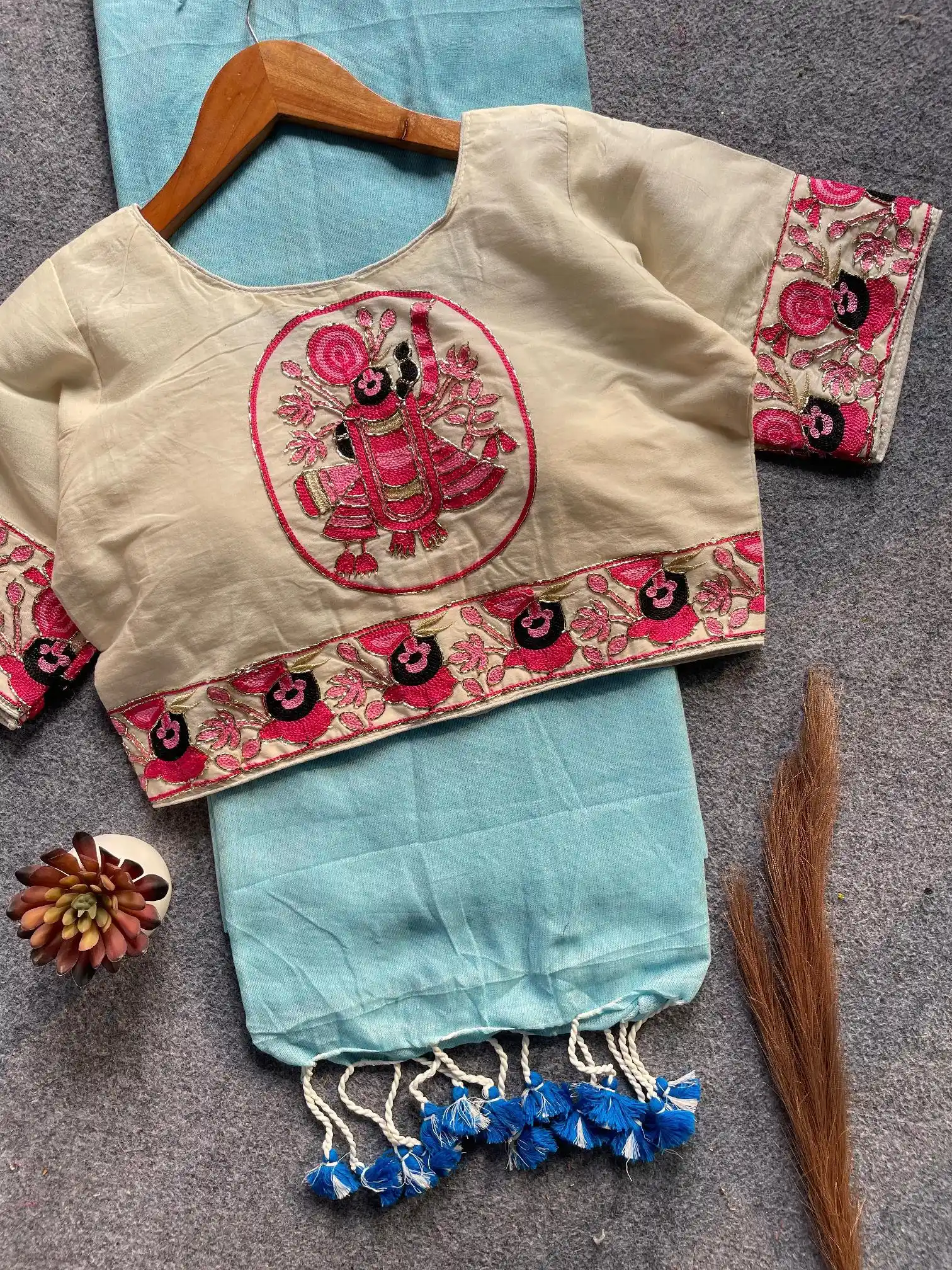 | Blouse | Hand Work Embroidered Padded Fully Stitched Ready Made Khadi Cotton (Alterable From 38″ to 42″) |