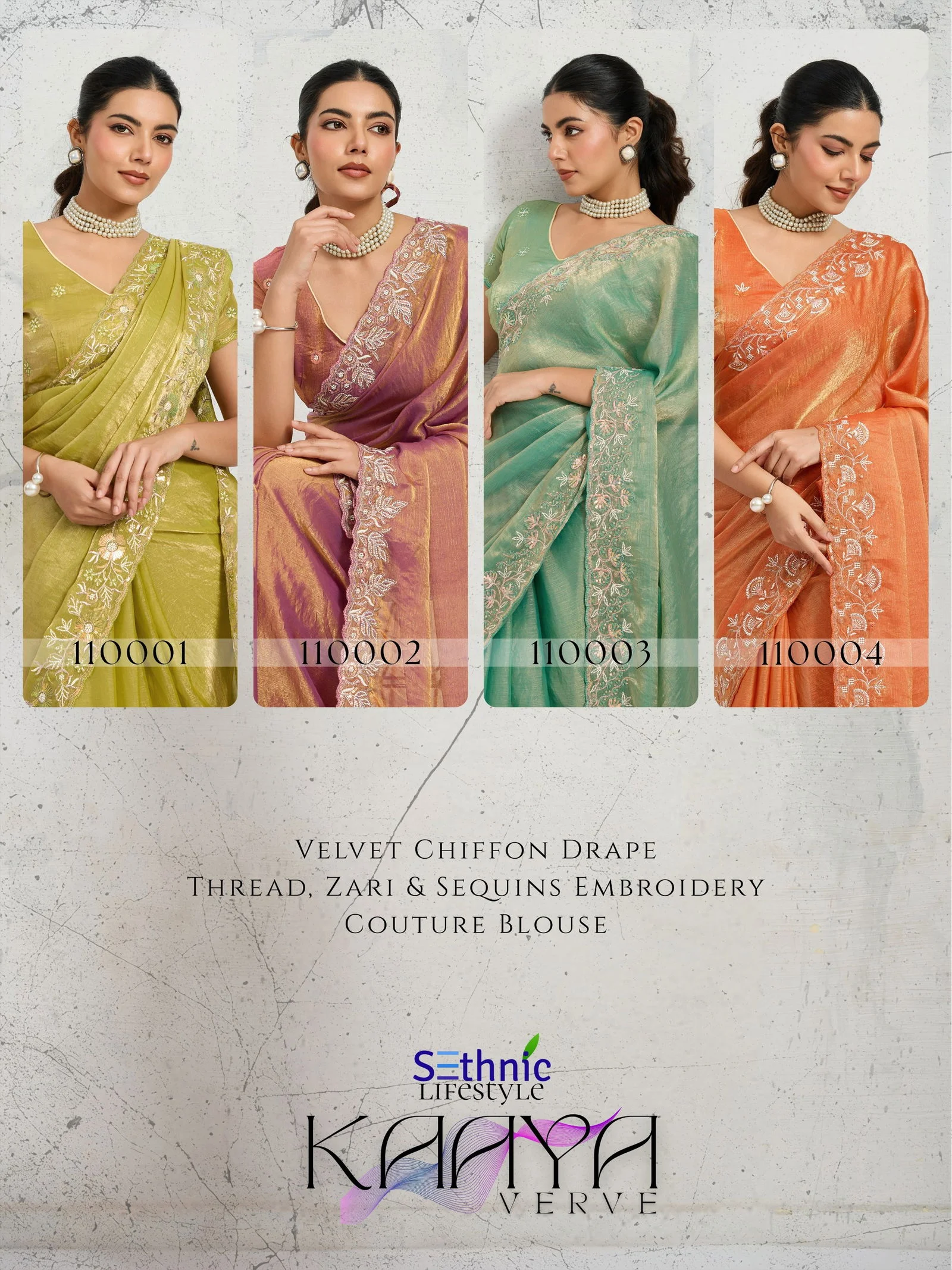 | Product Name | Sethnic Kaaya Verve Chiffon Velvet with Embroidered Saree Collection |