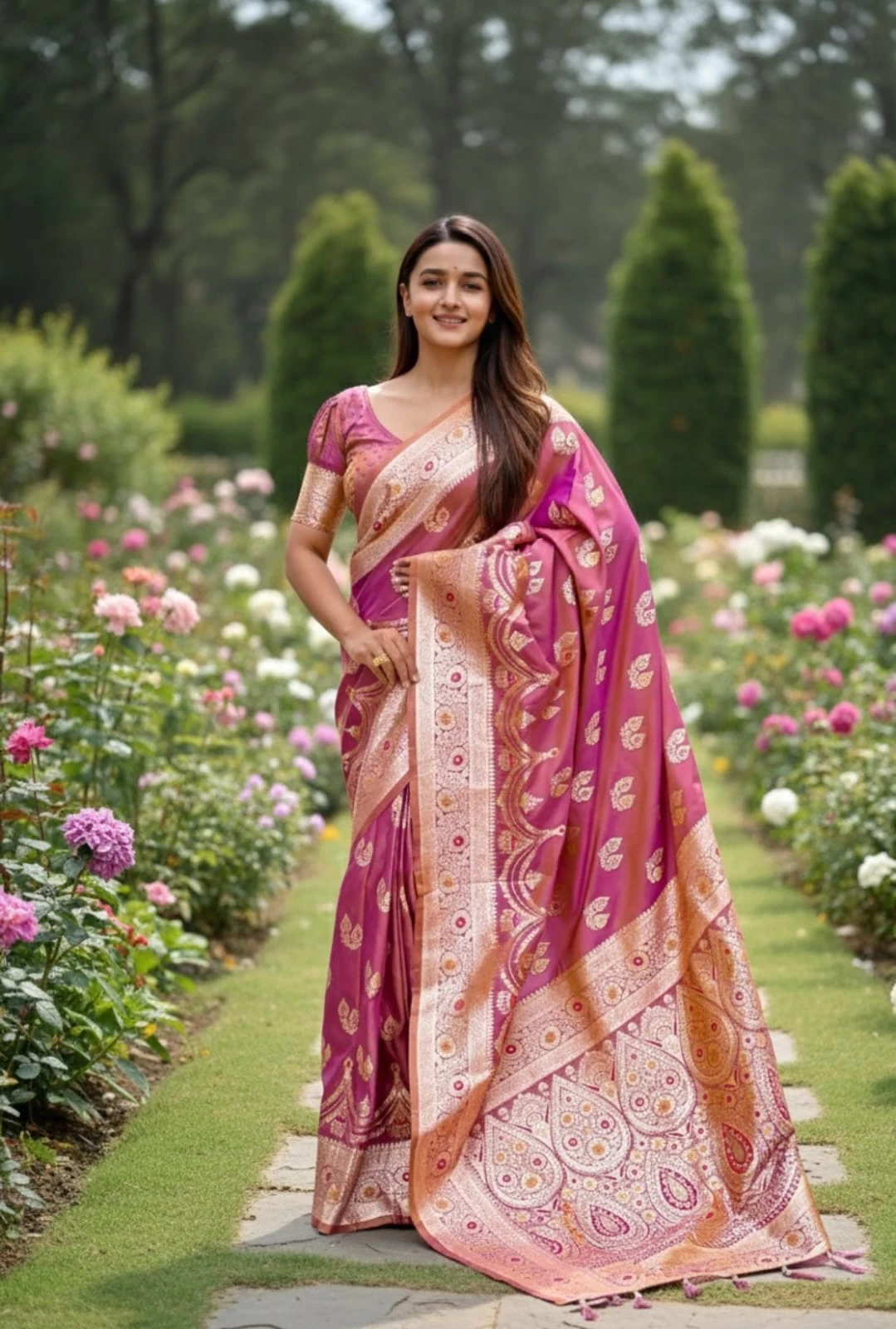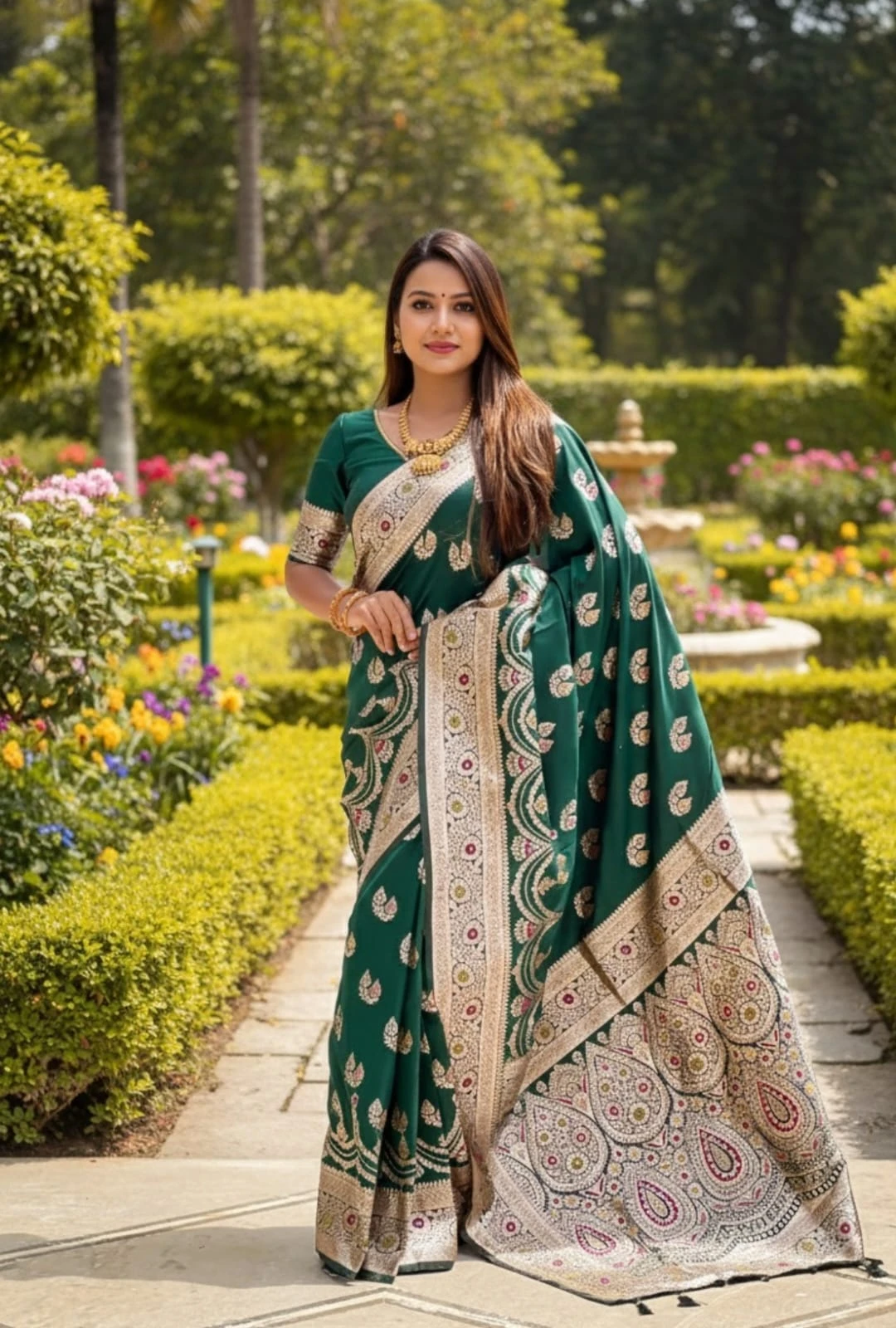 Saree Fabric Soft Banarasi Silk with Zari Weaving Meenakari Touchup