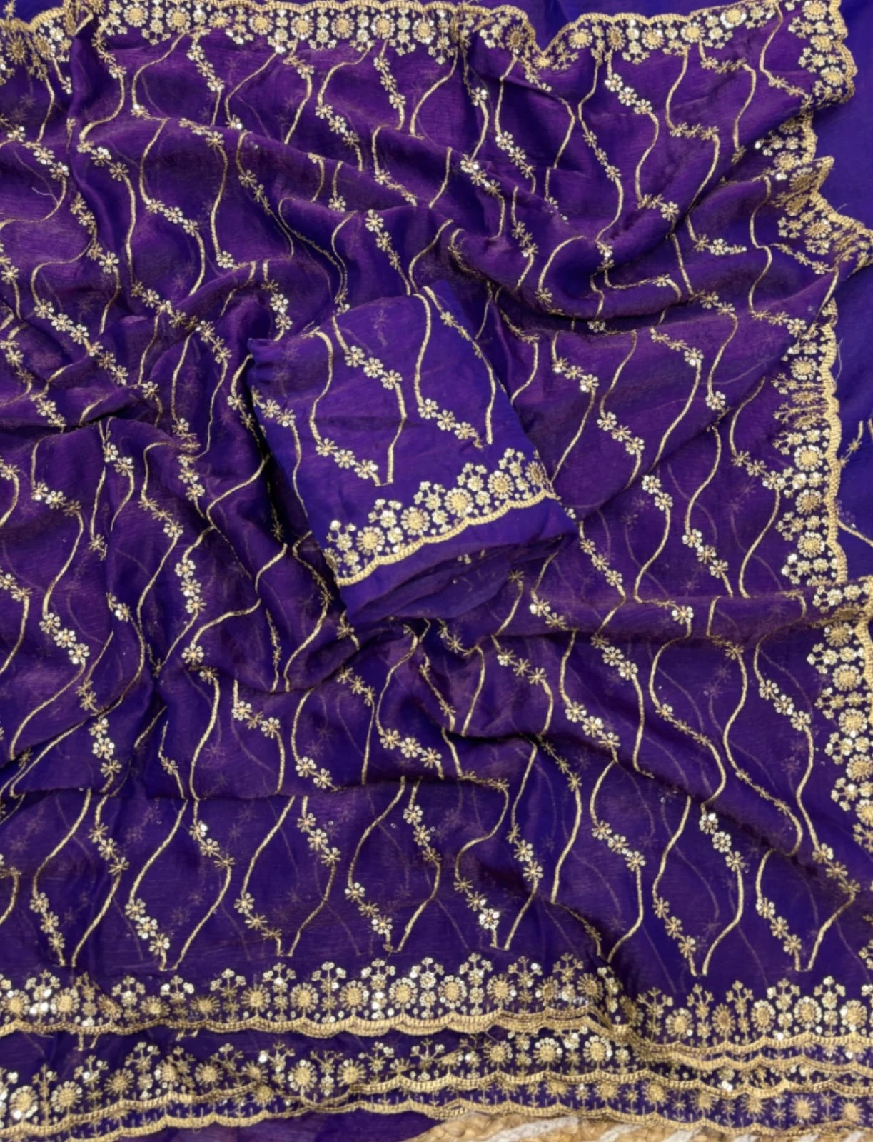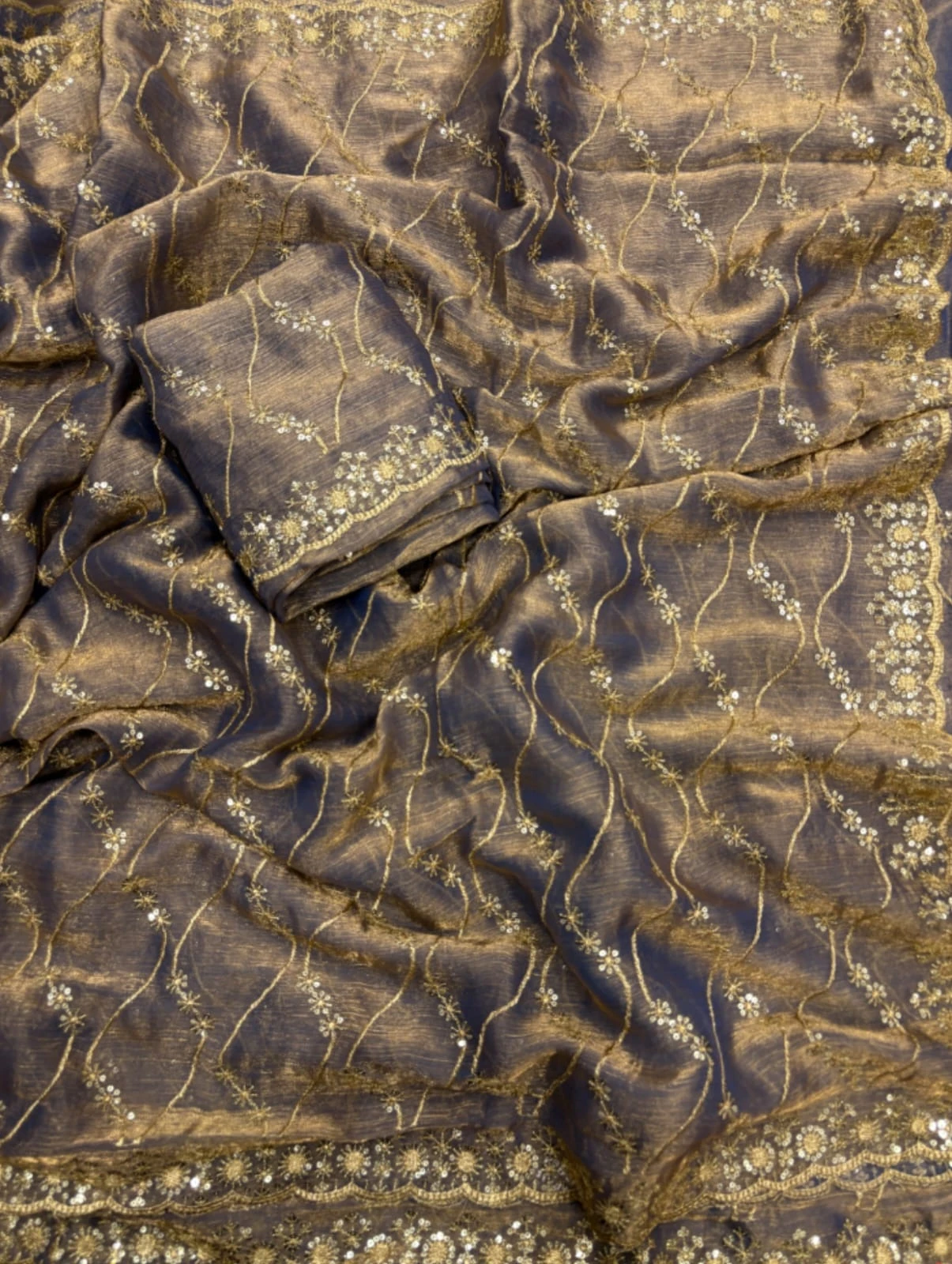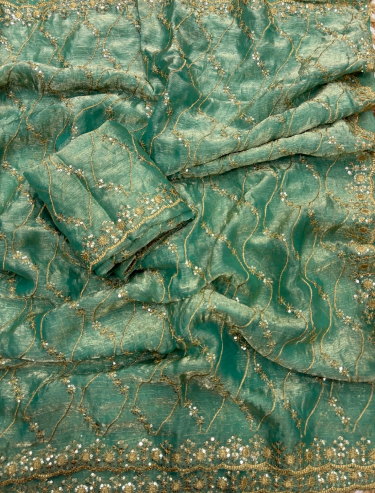 | Work | Golden Zari with 3 Mm Sequins Work |