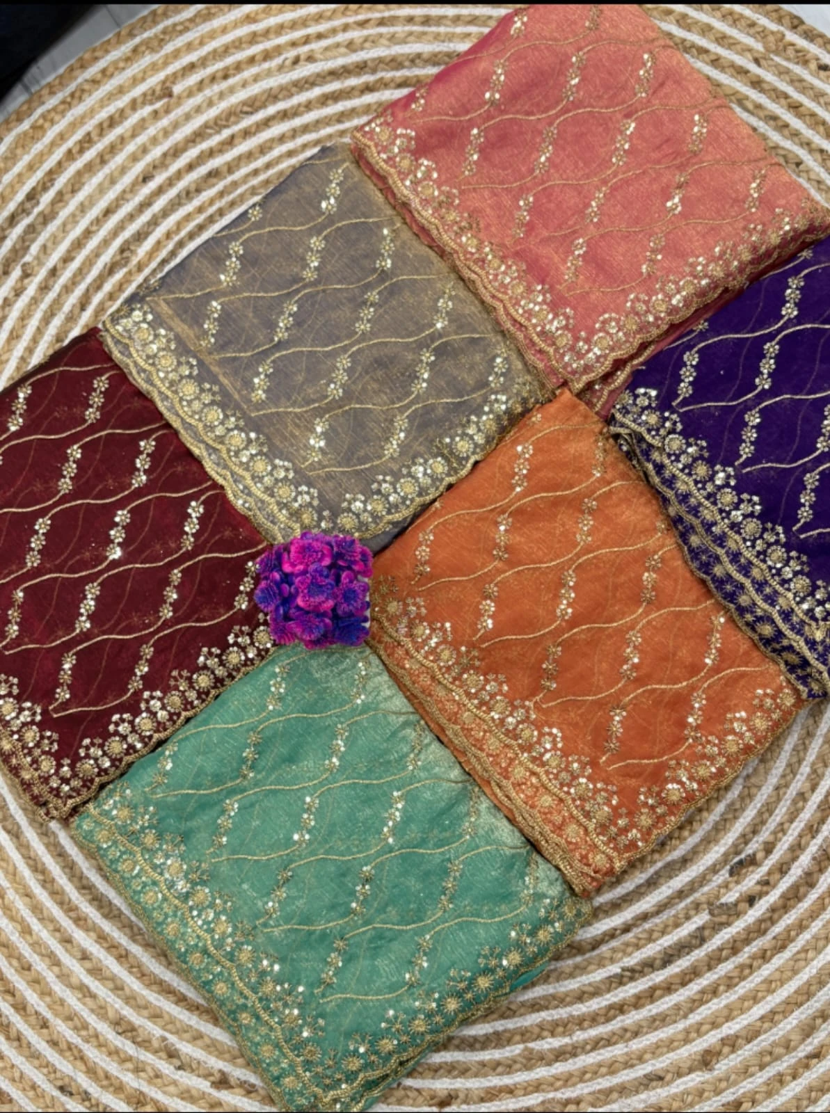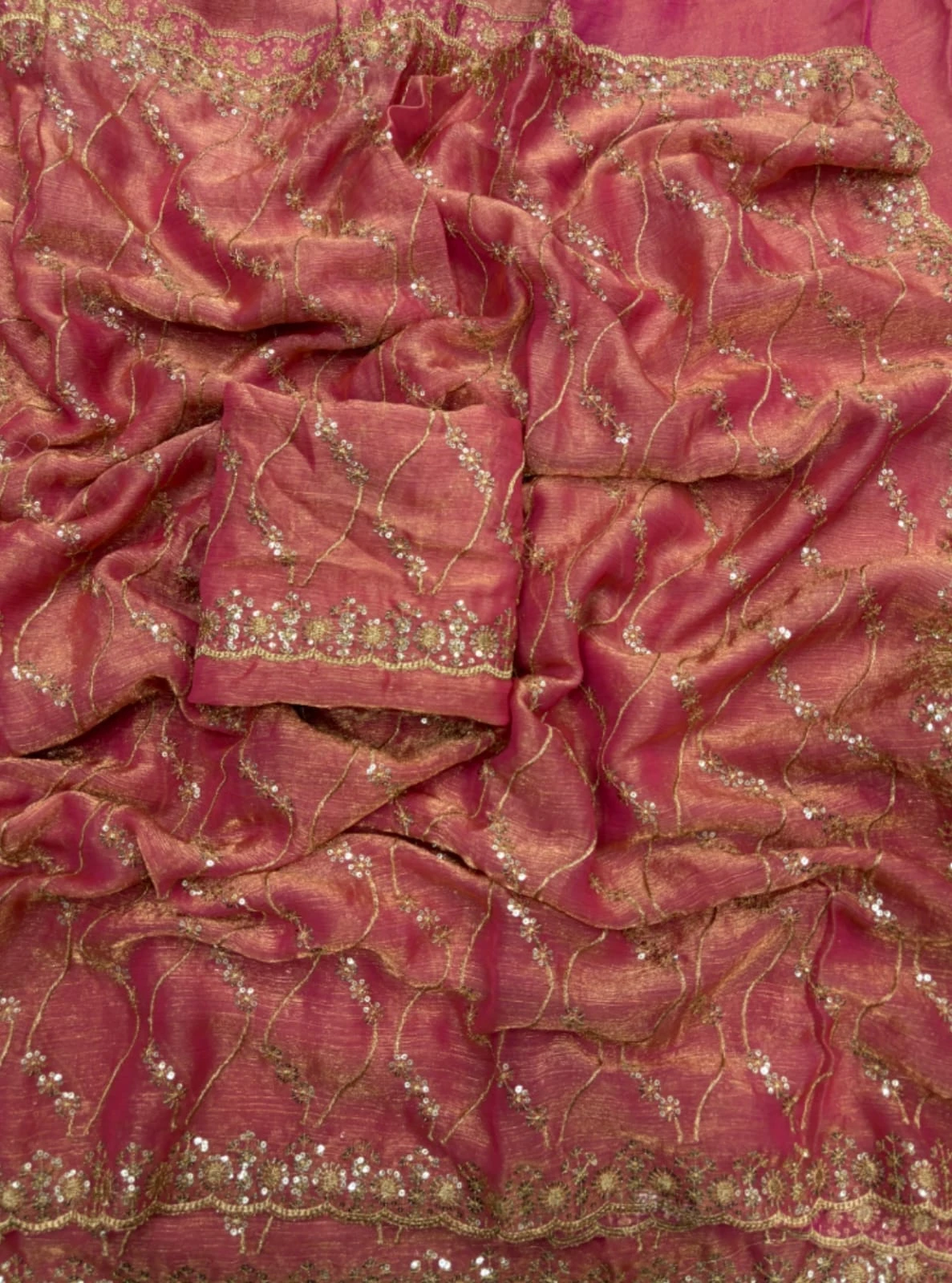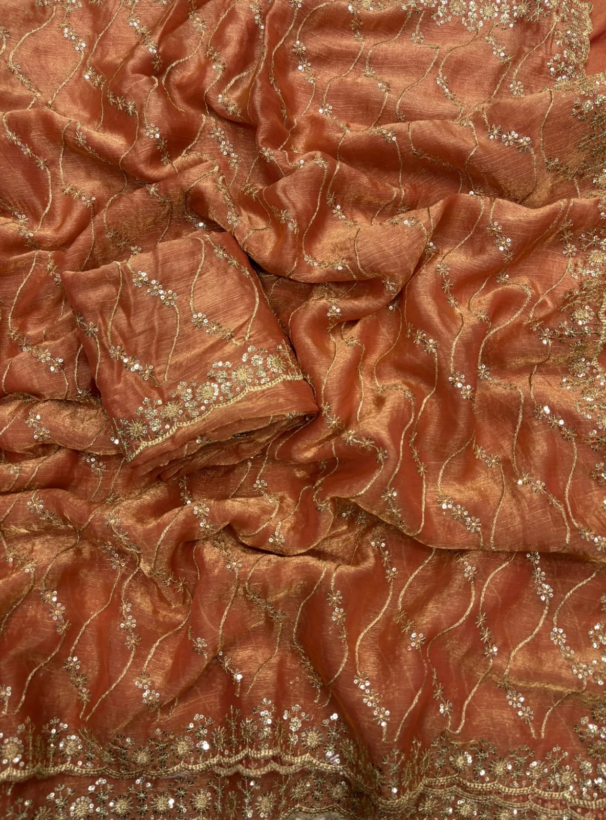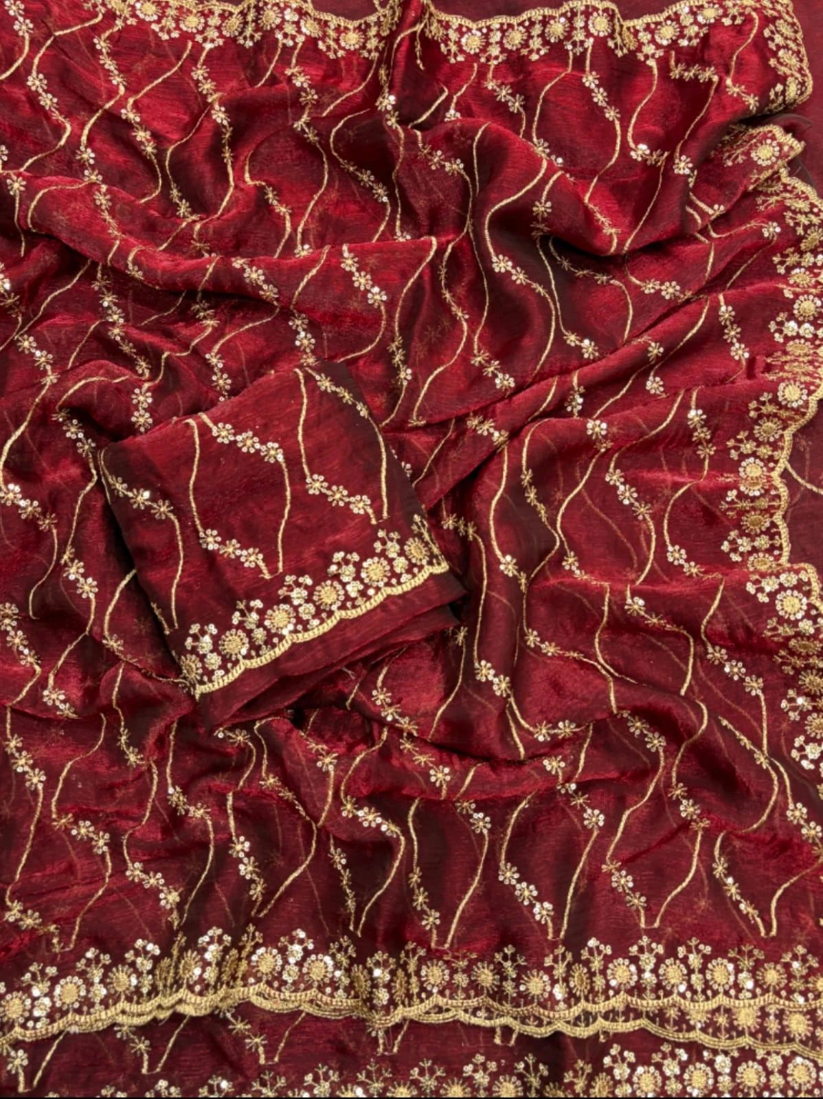 | Work | Golden Zari with 3 Mm Sequins Work |