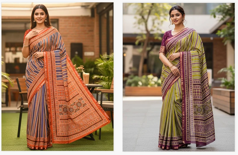| Fabric | Modal Cotton Saree Crafted Bagru Block Prints Woven Zari Border |