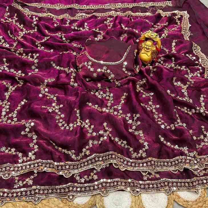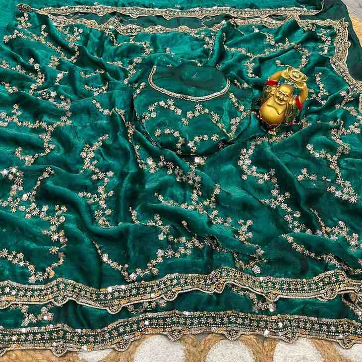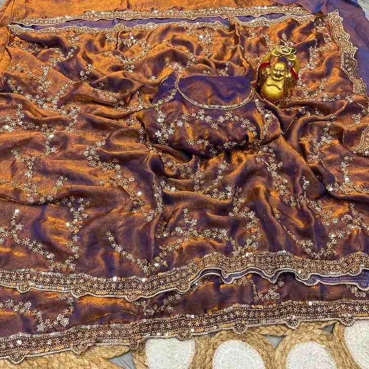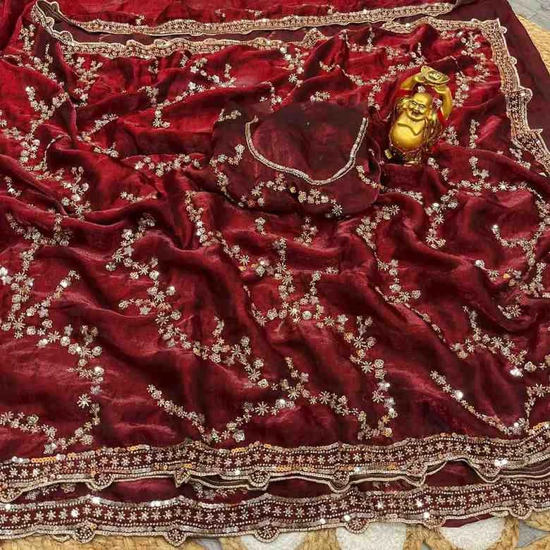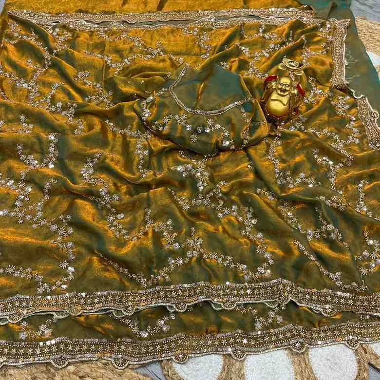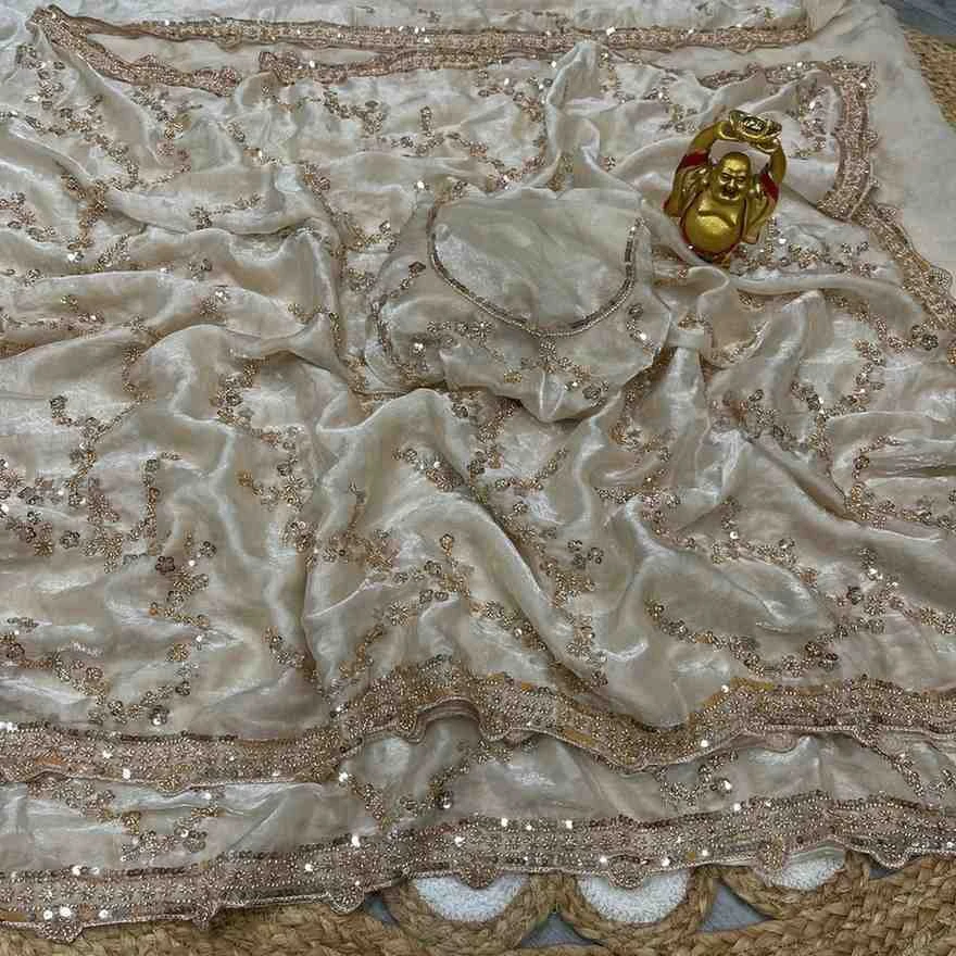 | Saree Work | Gold Beeds Sequence and Cutdana Delicate Handwork |