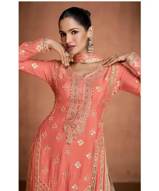 | Details | Top Real Chinon Dupatta Real Chinon Bottom Real Chinon Embroidery Work & Hand Work |
