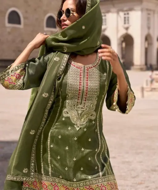 | Details | Top Real Simar Silk Dupatta Real Simar Silk Plazoo Real Simar Silk Embroidery Work & Tassel lace |