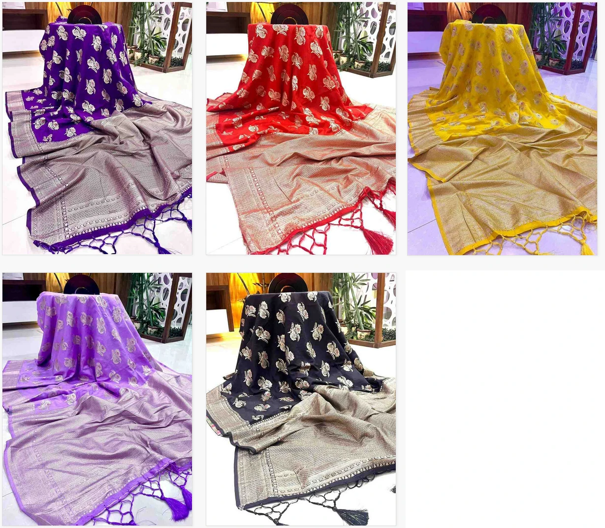 Fabric Pure Soft Khadi Crepe Silk Saree with Rich Antique Zari Wooven Rich Pallu with Tassels N Zari Wooven Border with Meenakari N Zari Wooven Gulab Buttas