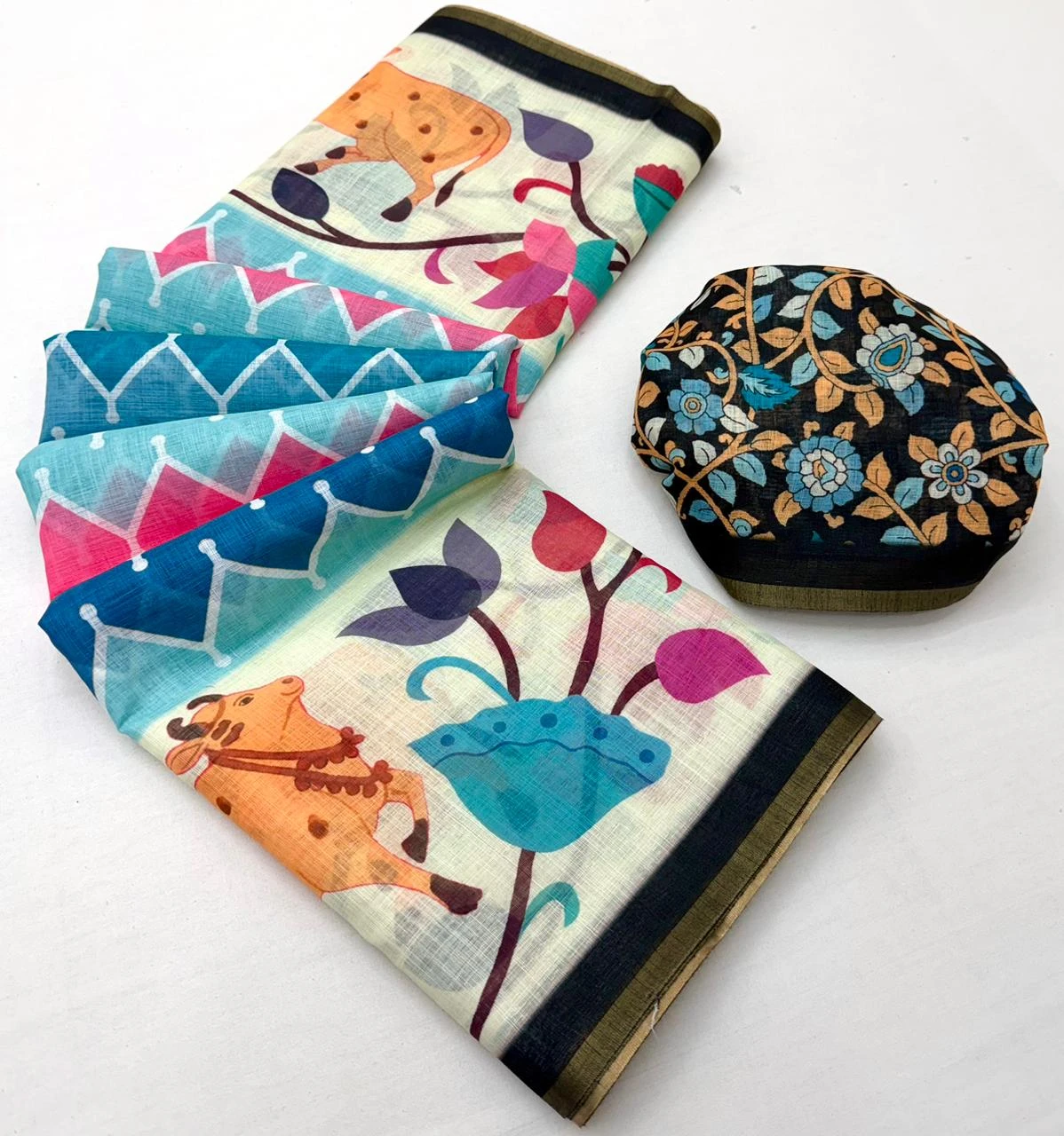 Product Name Rajyog Leena 346001 to 346007 Soft Linen Zari Border Fancy Saree Collection