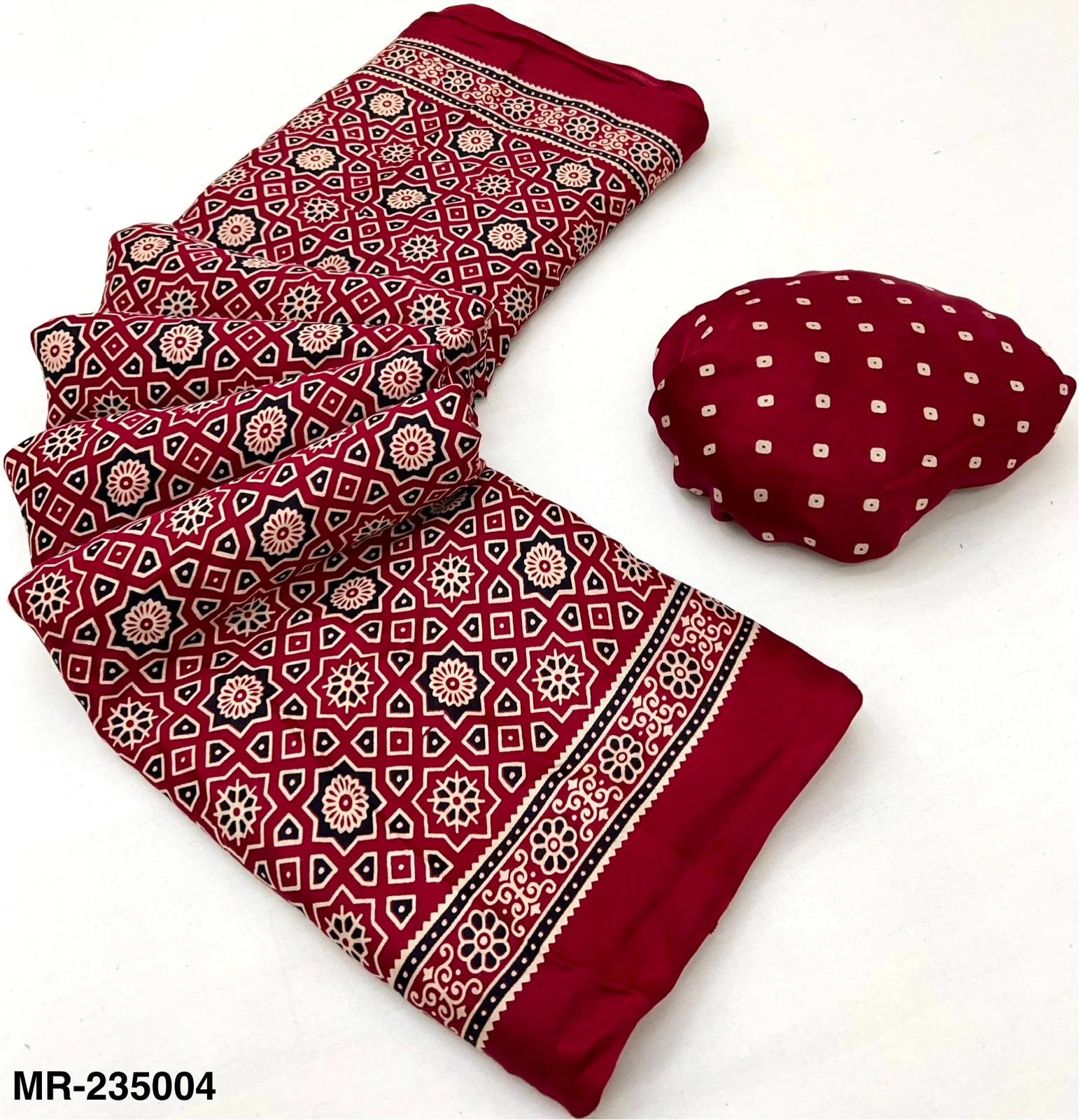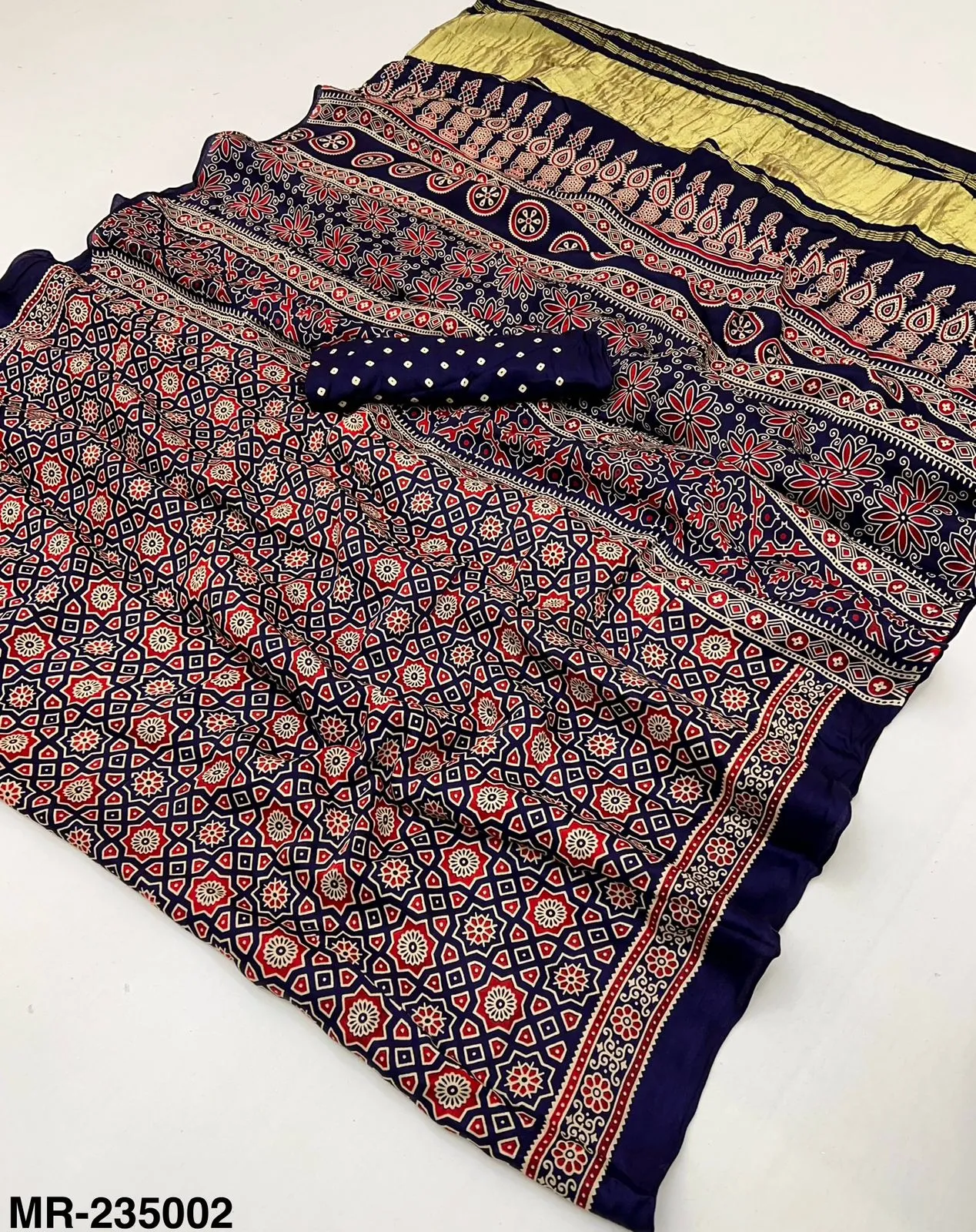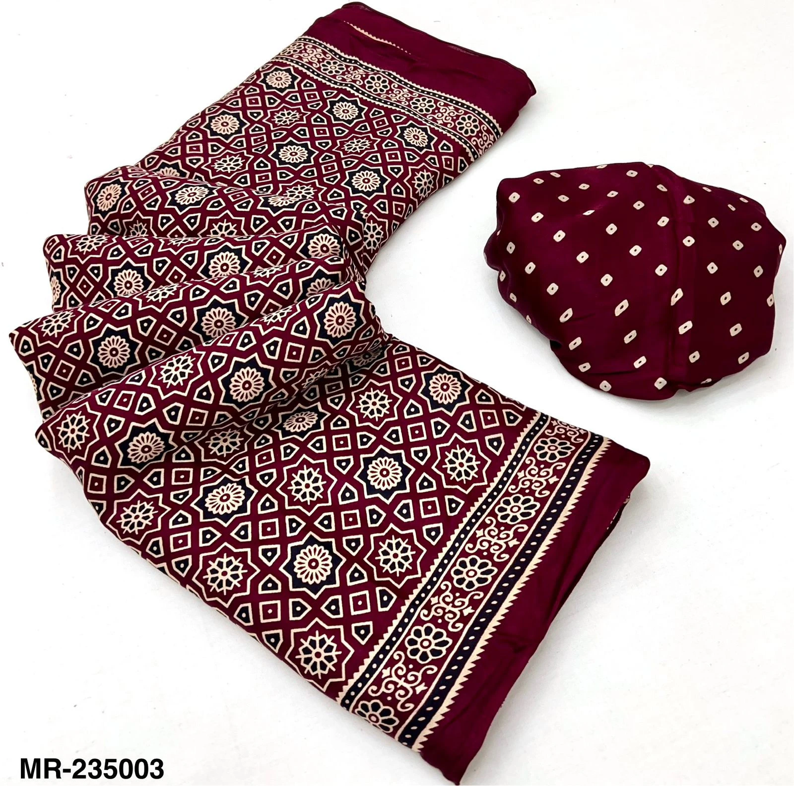 | Fabric | Pure Modal Ajrakh with Lagadi Patta & Handblock Print |