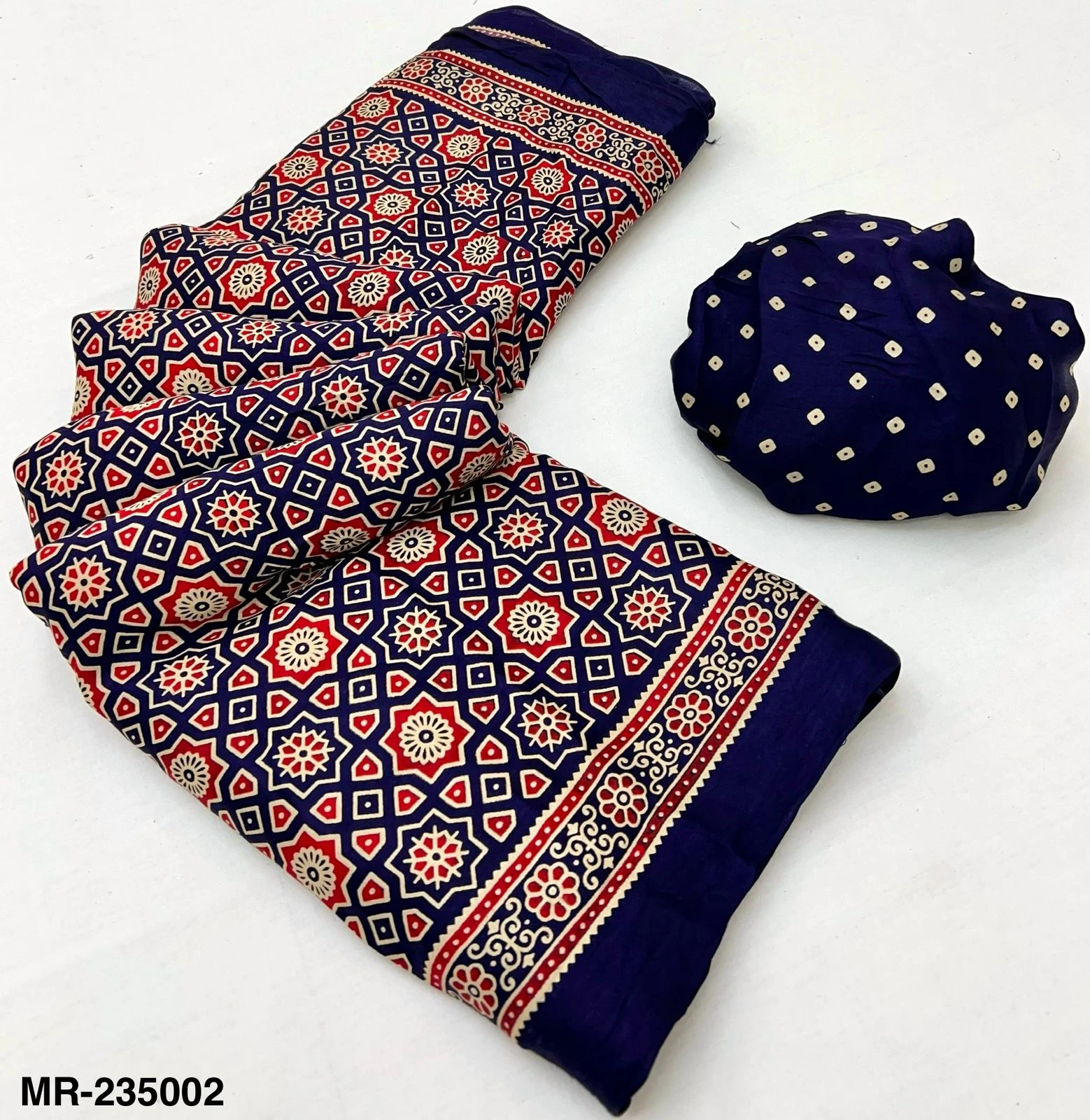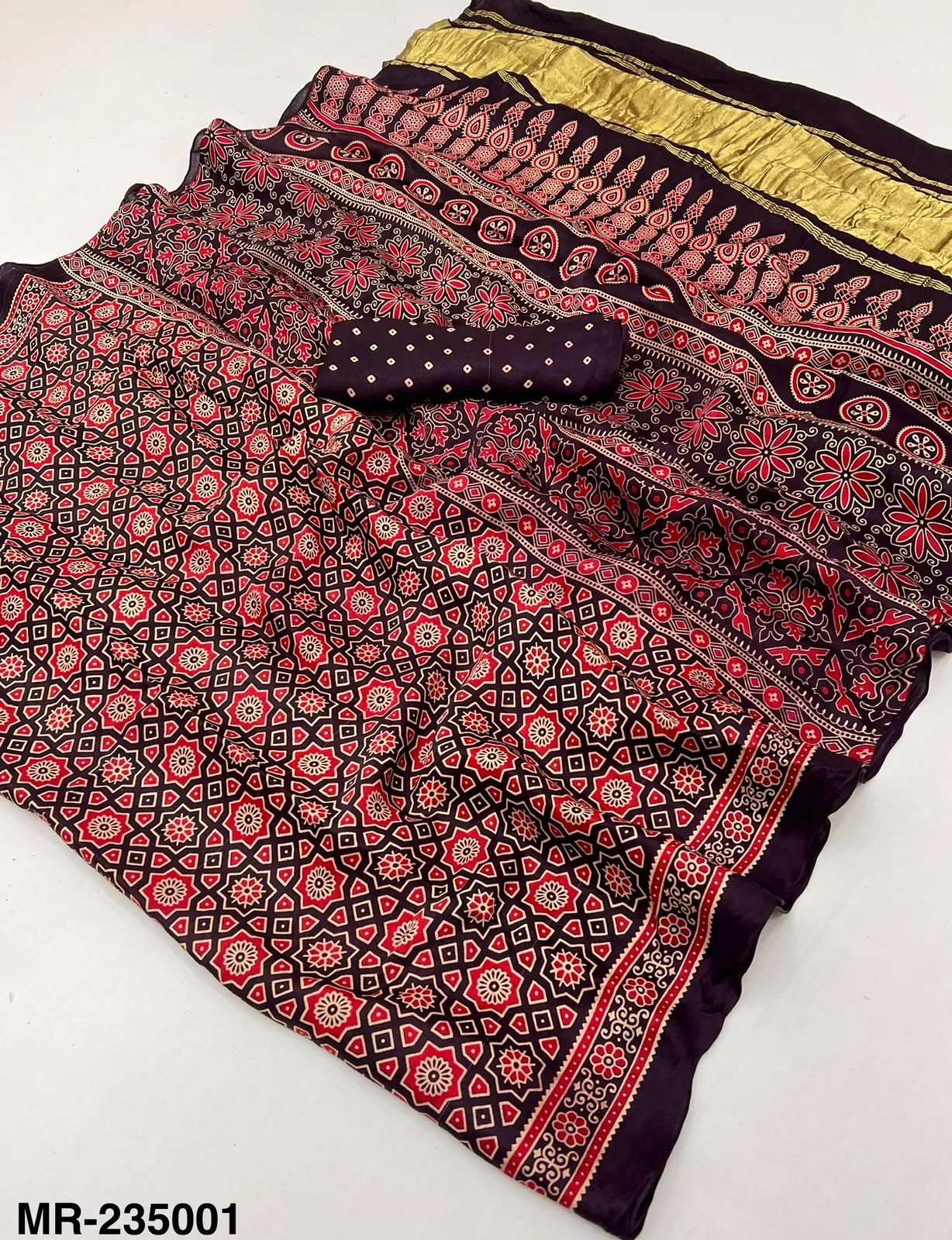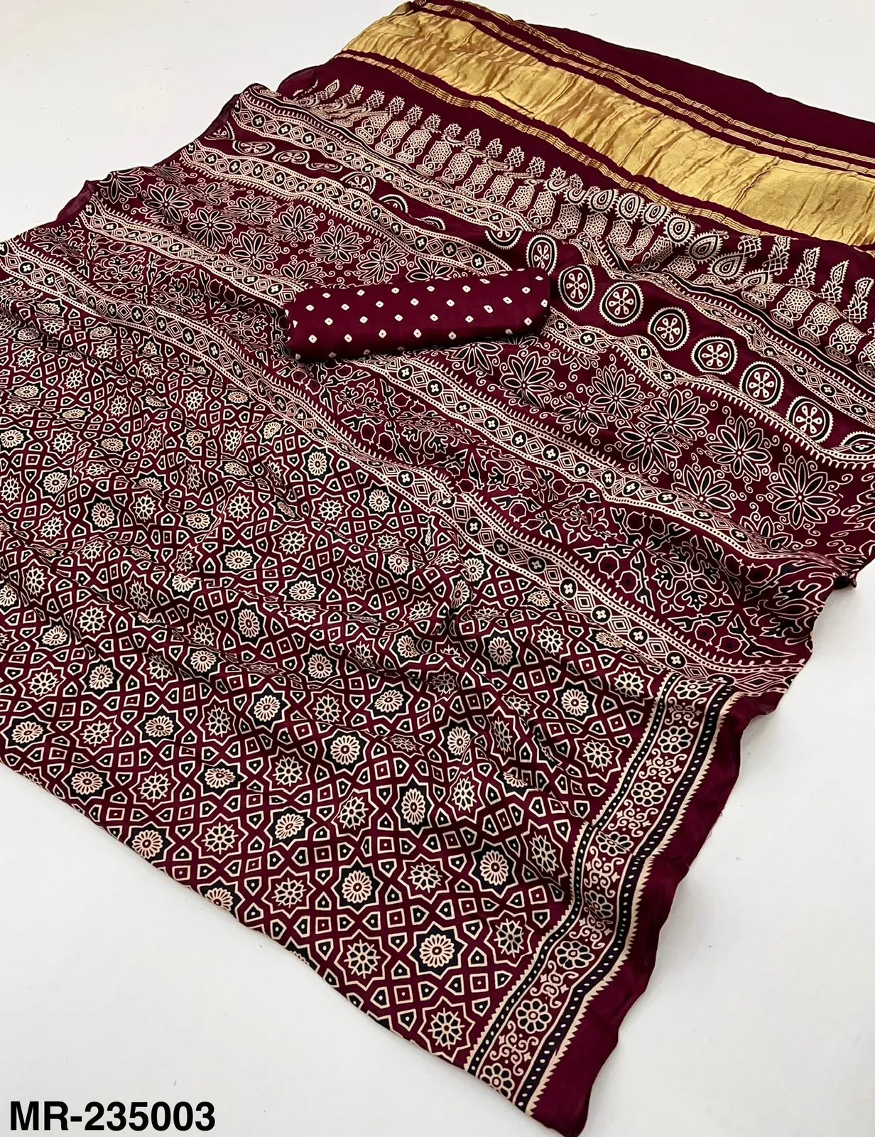 | Fabric | Pure Modal Ajrakh with Lagadi Patta & Handblock Print |