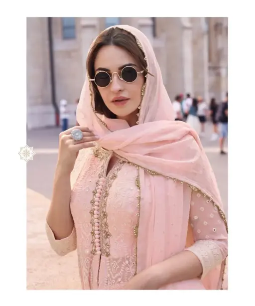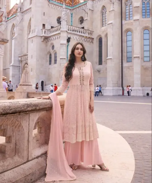 Details Real Georgette Top, Real Georgette Palazzo, Embroidered Real Georgette Dupatta