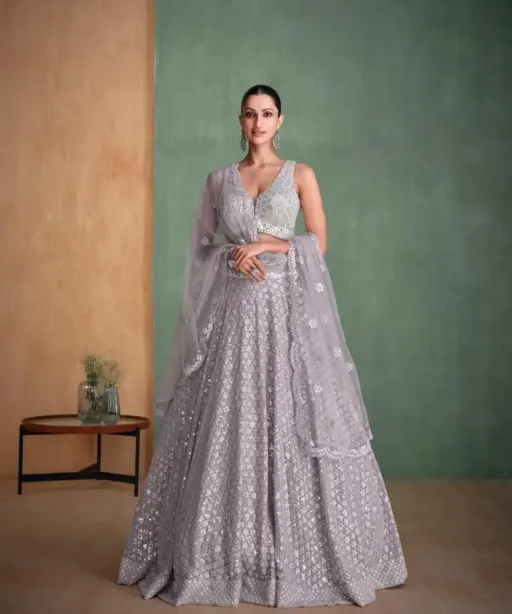 Details Premium Real Georgette (Heavy Embroidered Lehenga with Cancan and Embroidered Dupatta)