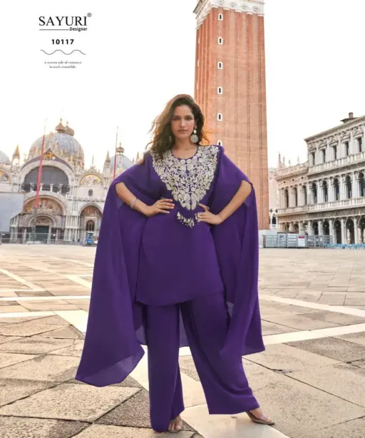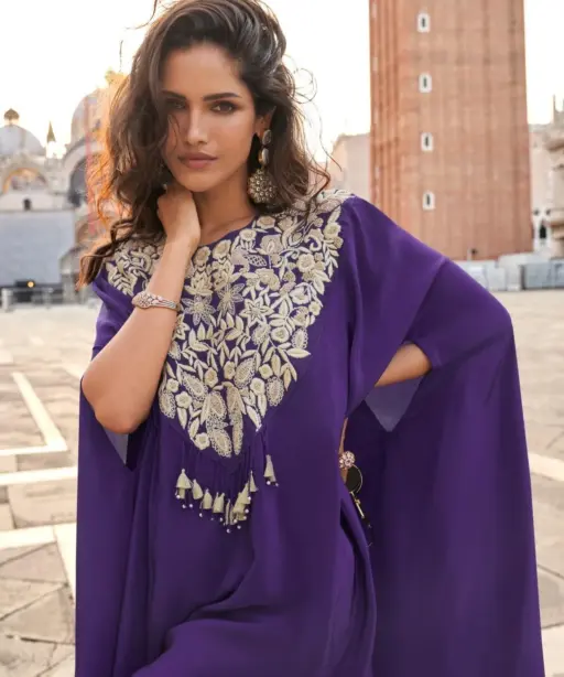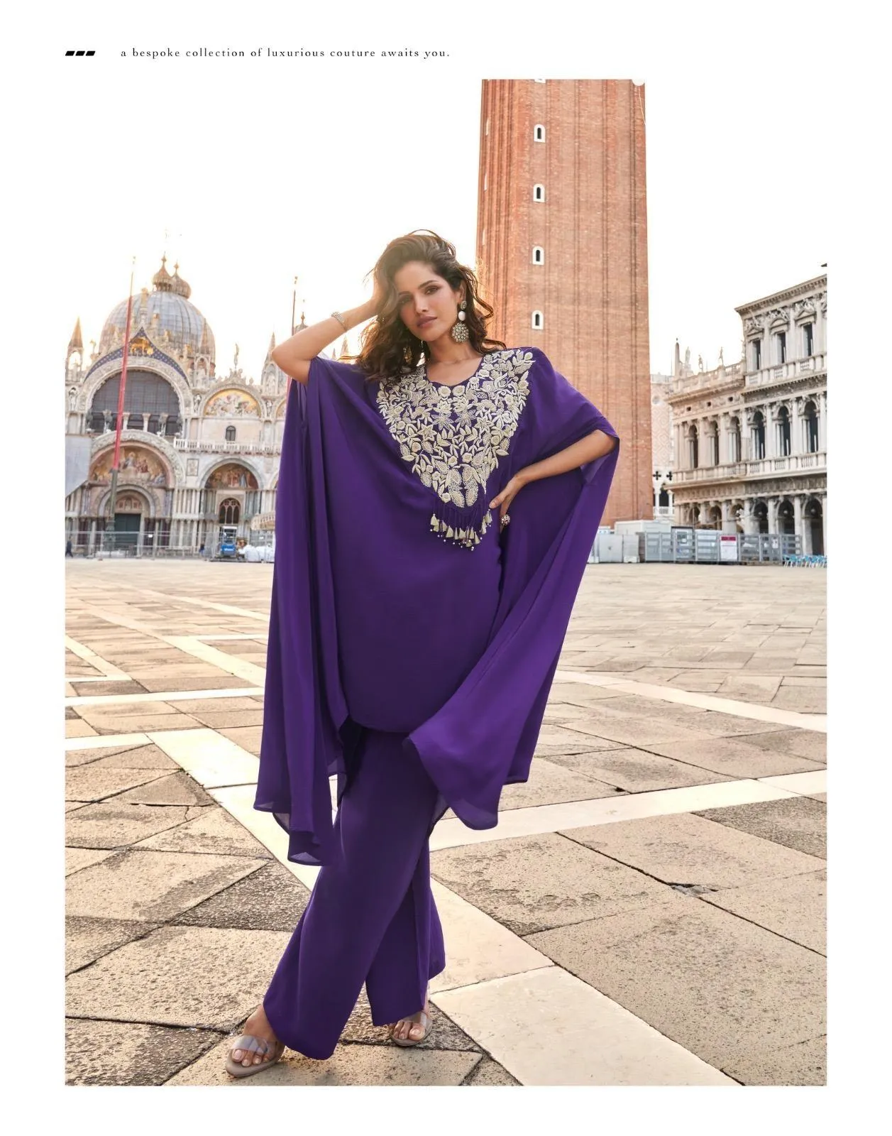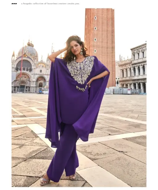 Details Premium French Crep Silk / Real Chinon Silk Hand Embroidered Long Cut Style Top With Plazzo