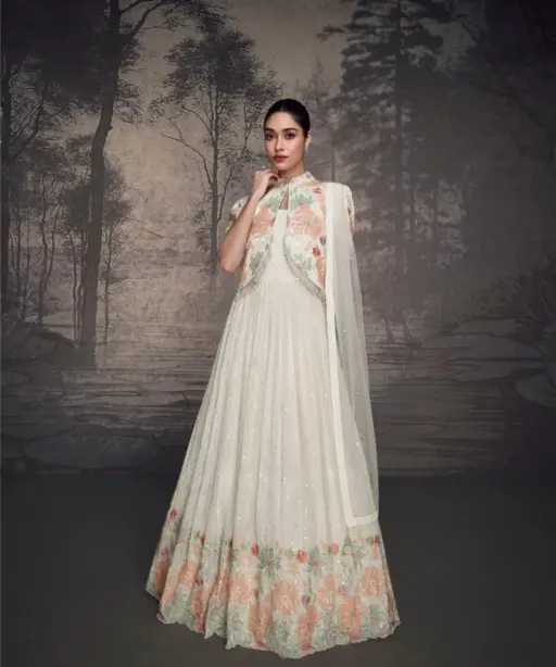 | Details | Real Georgette (Heavy Look Stylish Embroidered Lucknowi gowns with Tassles) |