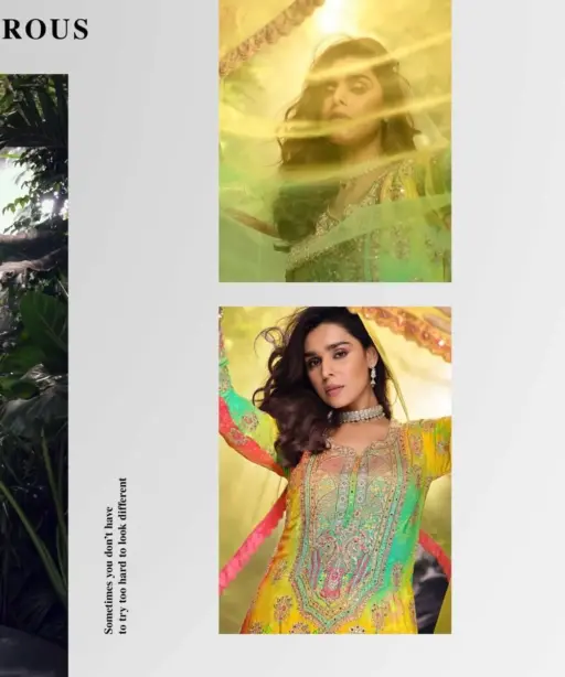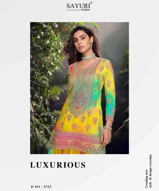 Details Premium Real Chinnon Silk (Heavy Look Embroidered Top with Hand Mirror Work, Embroidered Palazzo, Embroidered Net Dupatta)