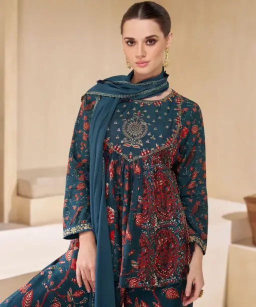 | Details | Pure Muslin / Real Chinnon Silk / Pure Crep Silk (Sleeves Attached, Embroidered) |