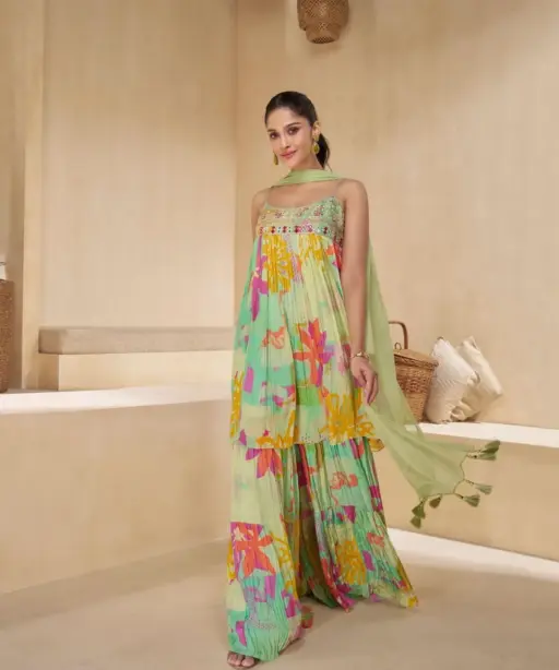 | Details | Pure Muslin / Real Chinnon Silk / Pure Crep Silk (Sleeves Attached, Embroidered) |