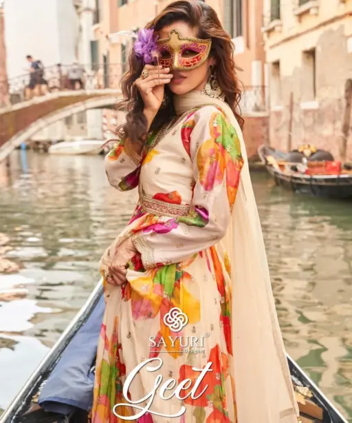 Details Premium Real Chinon Silk ( Festive Look Front And Back Embroidered Digital Chinon Silk Gown With Dupatta )