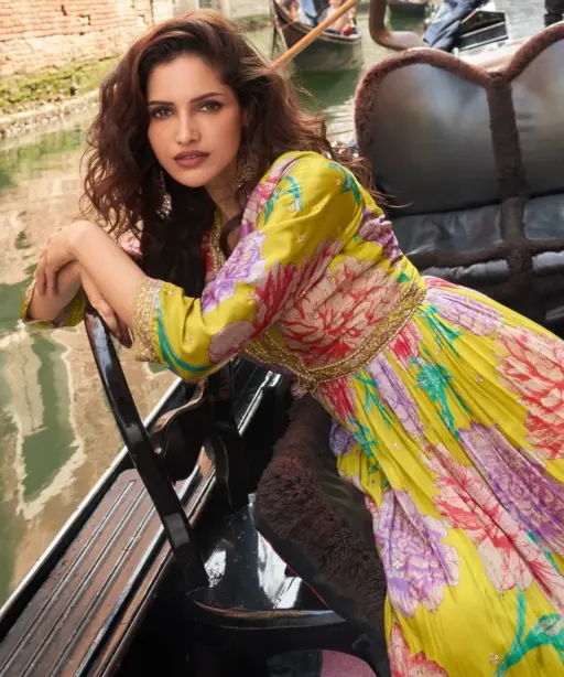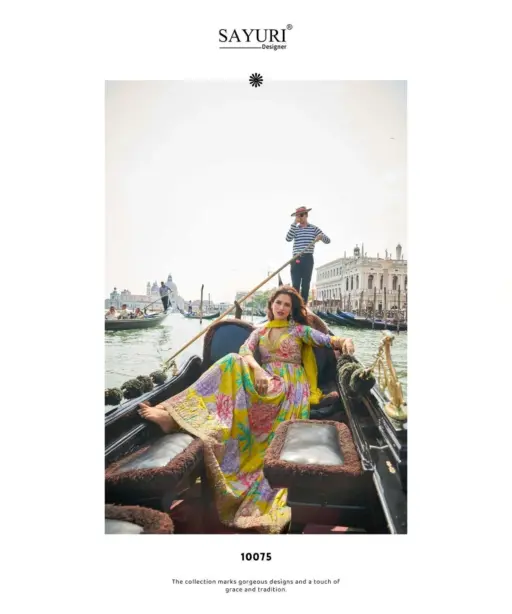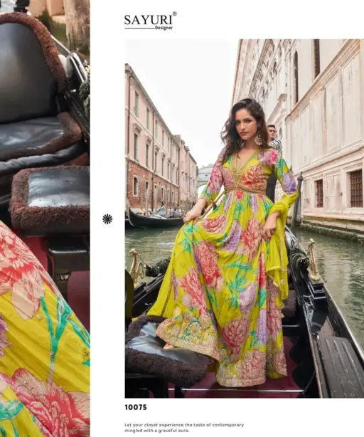 Details Premium Real Chinon Silk ( Festive Look Front And Back Embroidered Digital Chinon Silk Gown With Dupatta )