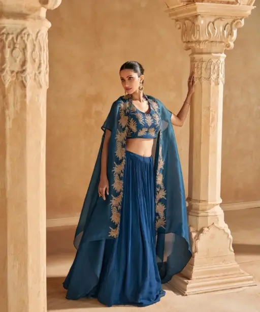 | Details | Premium Real Chinnon Silk (Pure Handwork Organza Silk Jacket with Handwork Silk Blouse and Chinnon Silk Lehenga with Cancan) |