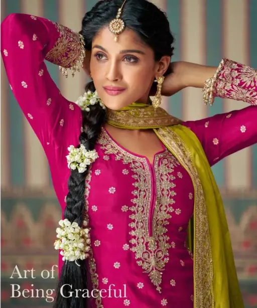 | Details | Premium Real Chinnon Silk (Full Heavy Look Embroidered Work with All Over Hand Embellished Mirror Work) |