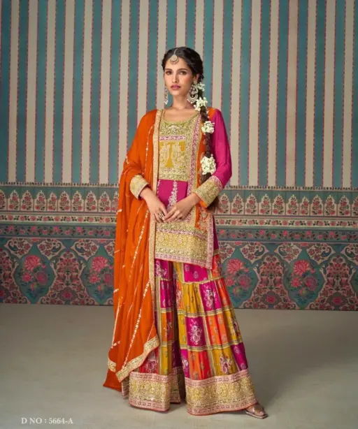 Details Premium Real Chinnon Silk (Full Heavy Look Embroidered Work with All Over Hand Embellished Mirror Work)