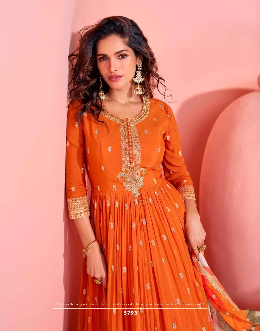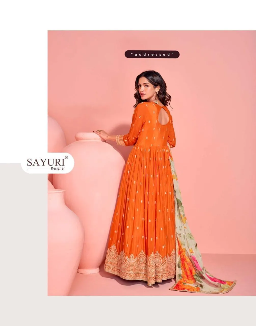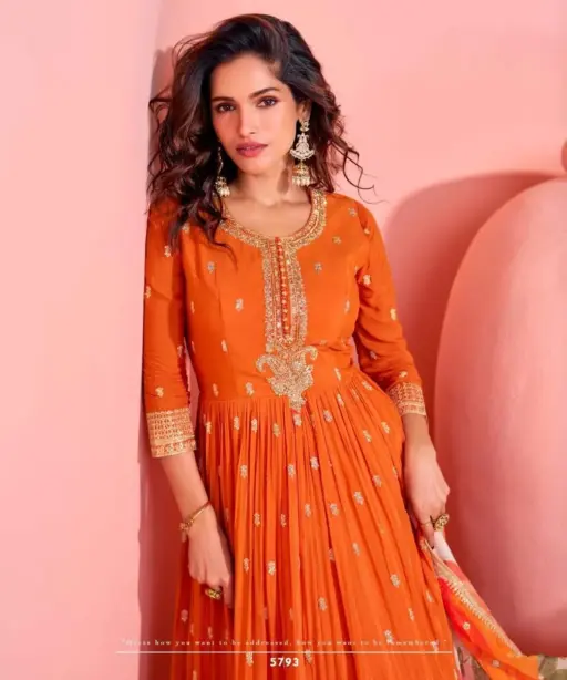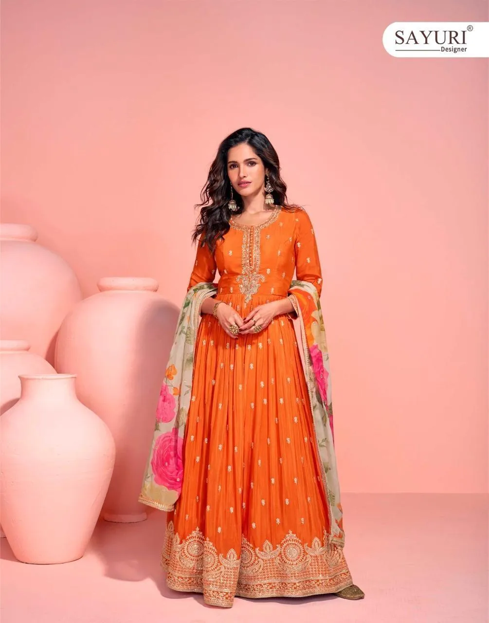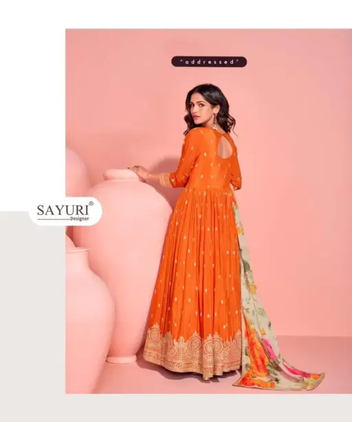 Details Premium Real Chinnon Silk (Premium Chinnon Silk Embroidered Front and Back Gown with Embroidered Digital Chinnon Silk Dupatta)