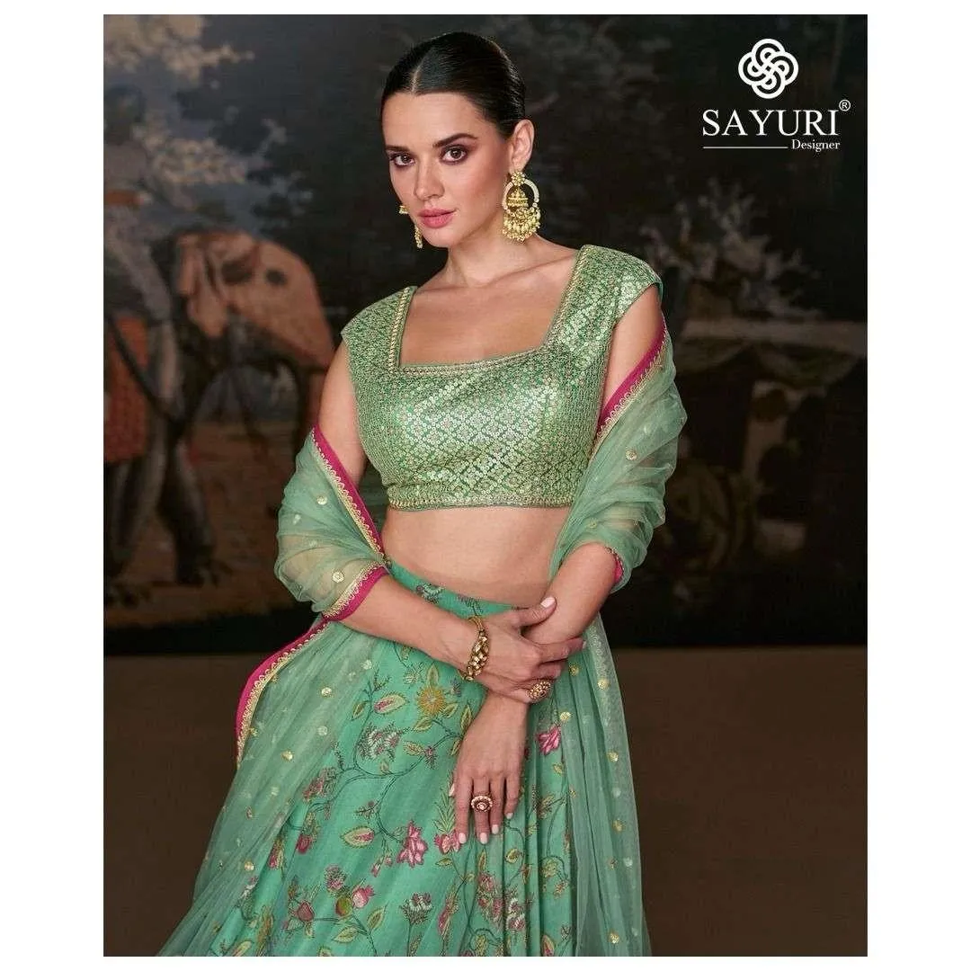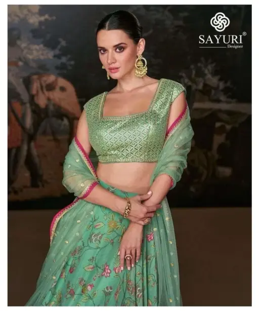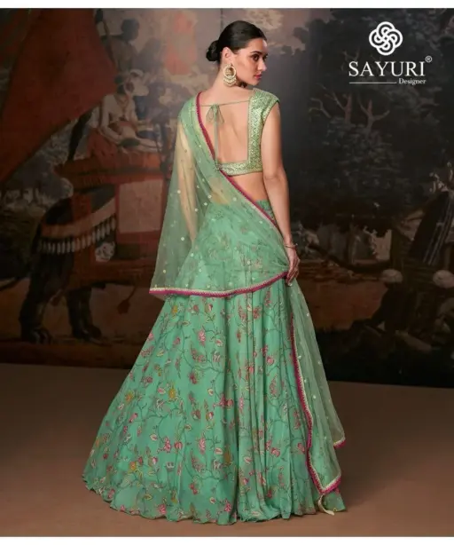 | Details | Banglori Silk Blouse / Pure Organza Silk Lehenga (Sleeves Attached, Front and Back Embroidered with Cancan) |