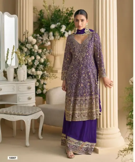 | Details | Premium Real Georgette (Heavy Look Embroidered Top with Hand Seroski, Embroidered Palazzo, Embroidered Dupatta) |