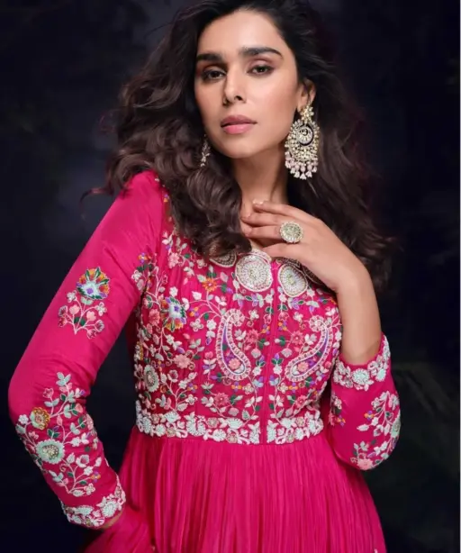 | Details | Premium Real Chinnon Silk (Heavy Look Multi Threads Handwork Embroidered Front and Back Gown with Embroidered Organza Dupatta) |
