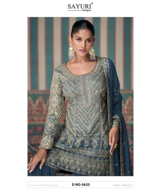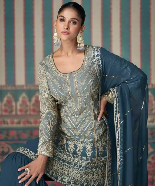 Details Premium Real Georgette (Heavy Embroidered Top with Sharara, Gharara and Embroidered Dupatta)