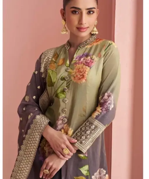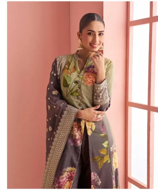 Details Fabric – Real Premium Silk ( Stylist Look Embroidered Front Cut Top With Embroidered Pant With Jacquard Dupatta)