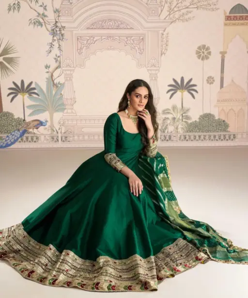 | Details | Premium Real Silk / Viscost Jacquard Silk (Trendy festive look front and back embroidered gown with Viscos Jacquard Silk dupatta) |
