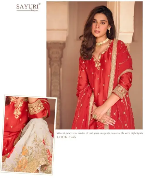 | Details | Real Premium Chinon Silk ( Festive Look Chinon Silk Embroidered Top With Embroidered Sharara And Dupatta) |