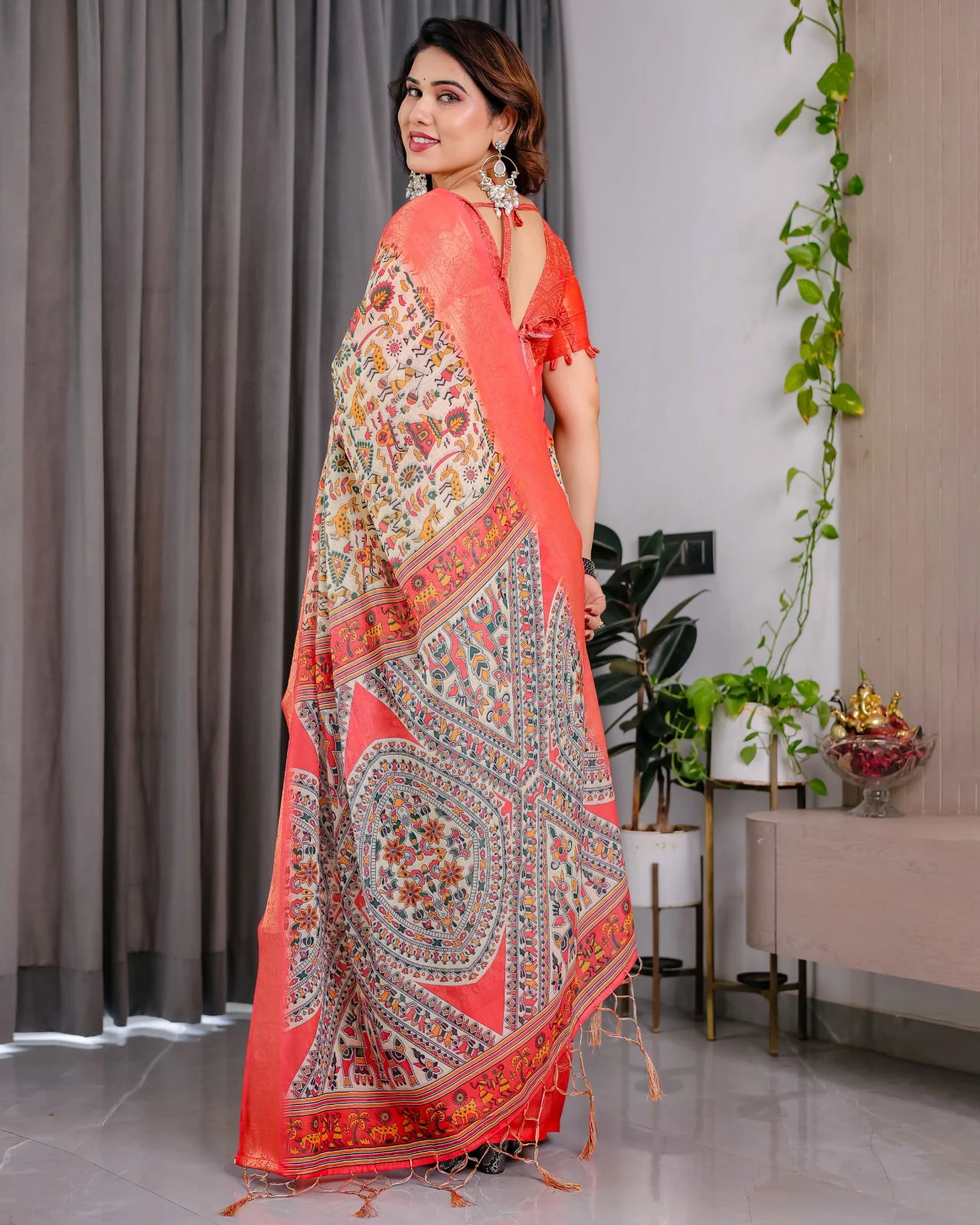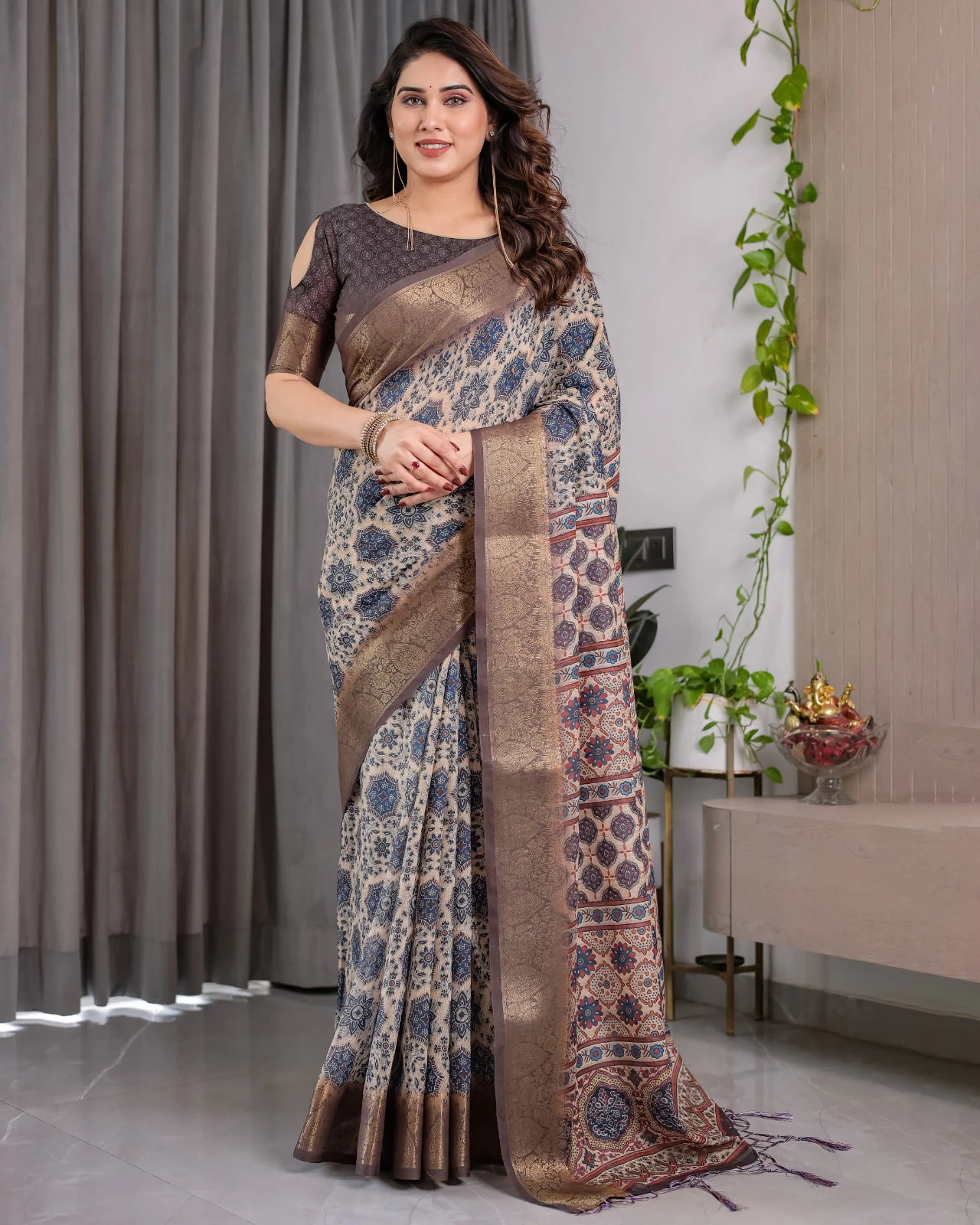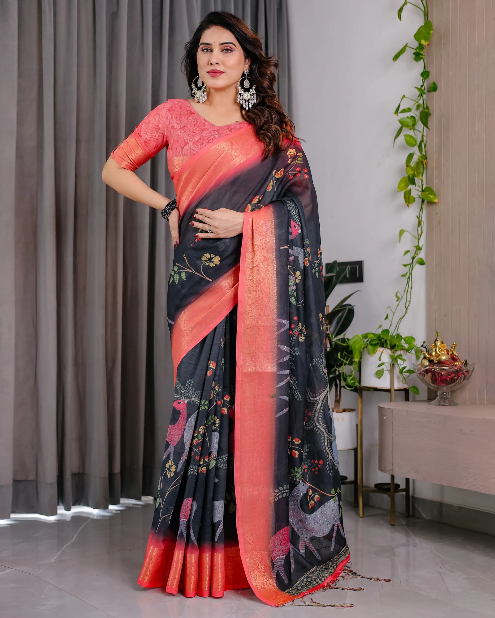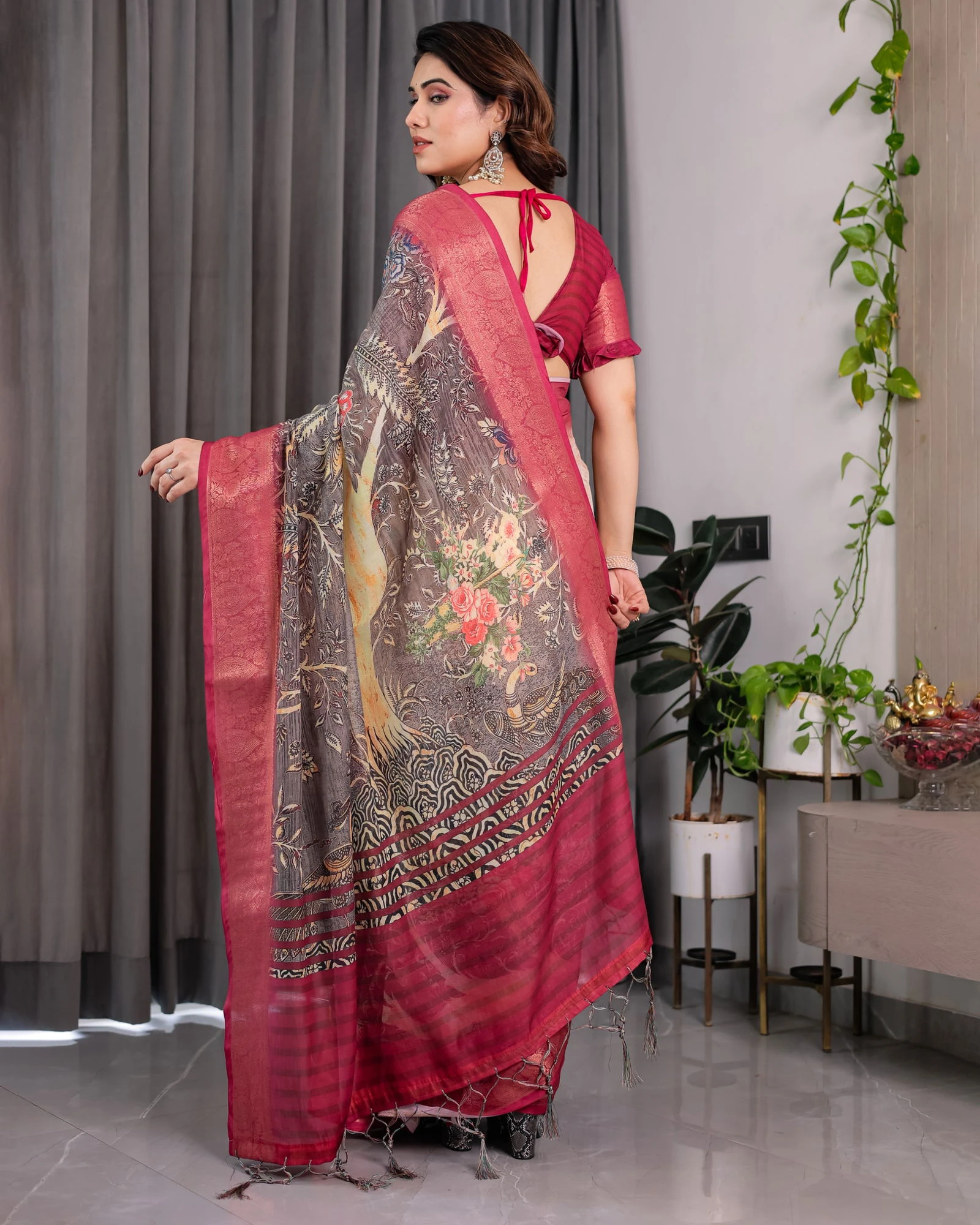 Saree Pure Handloom Linen with Digital Floral Print