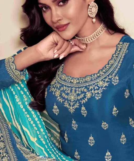 Details Embroidered Chinnon Top (Semi Stitch), Embroidered Chinnon Sharara Bottom (Stitched), Digital Printed Chinnon with Emb Work Dupatta