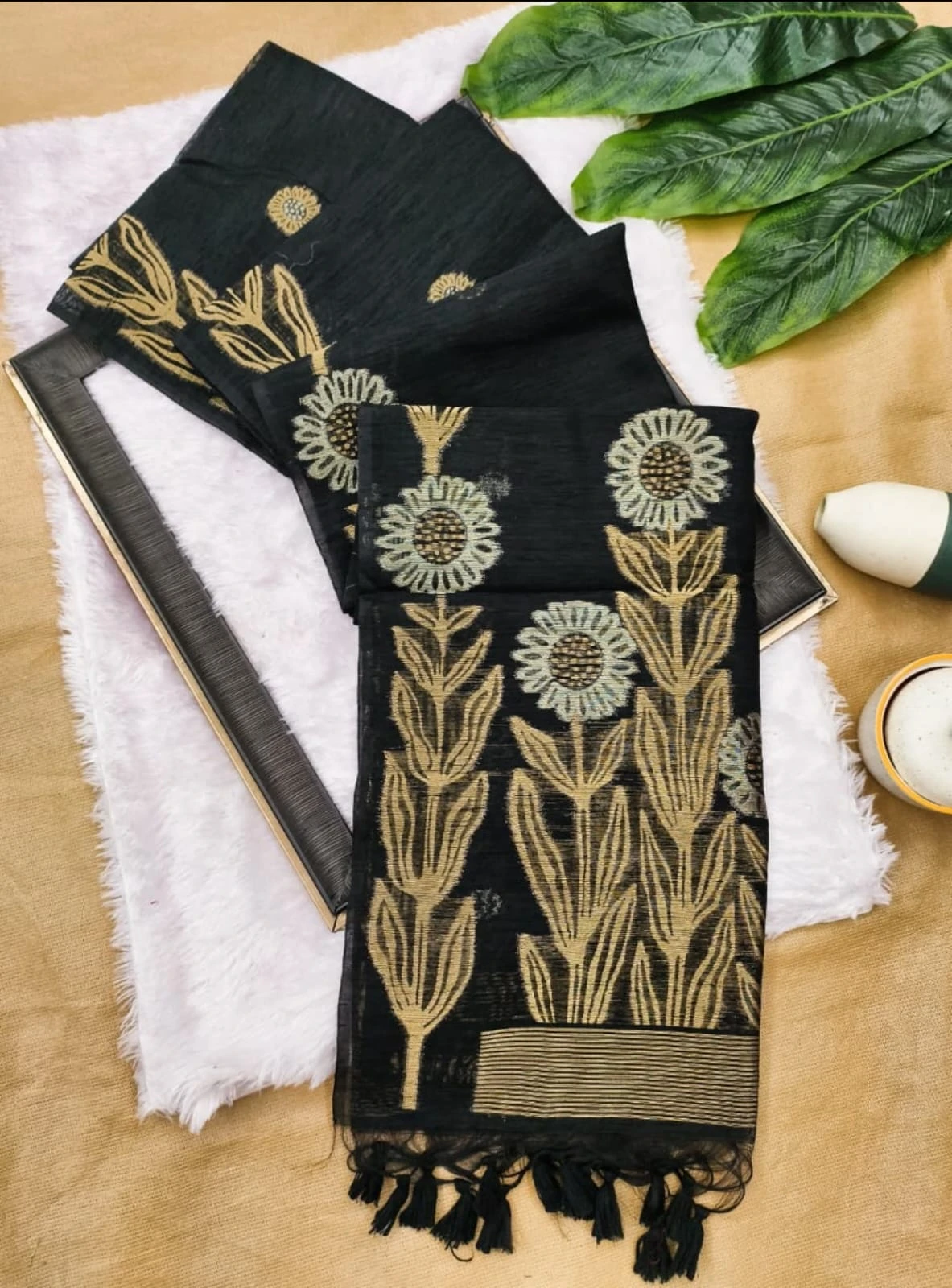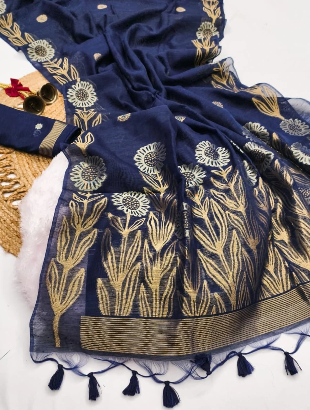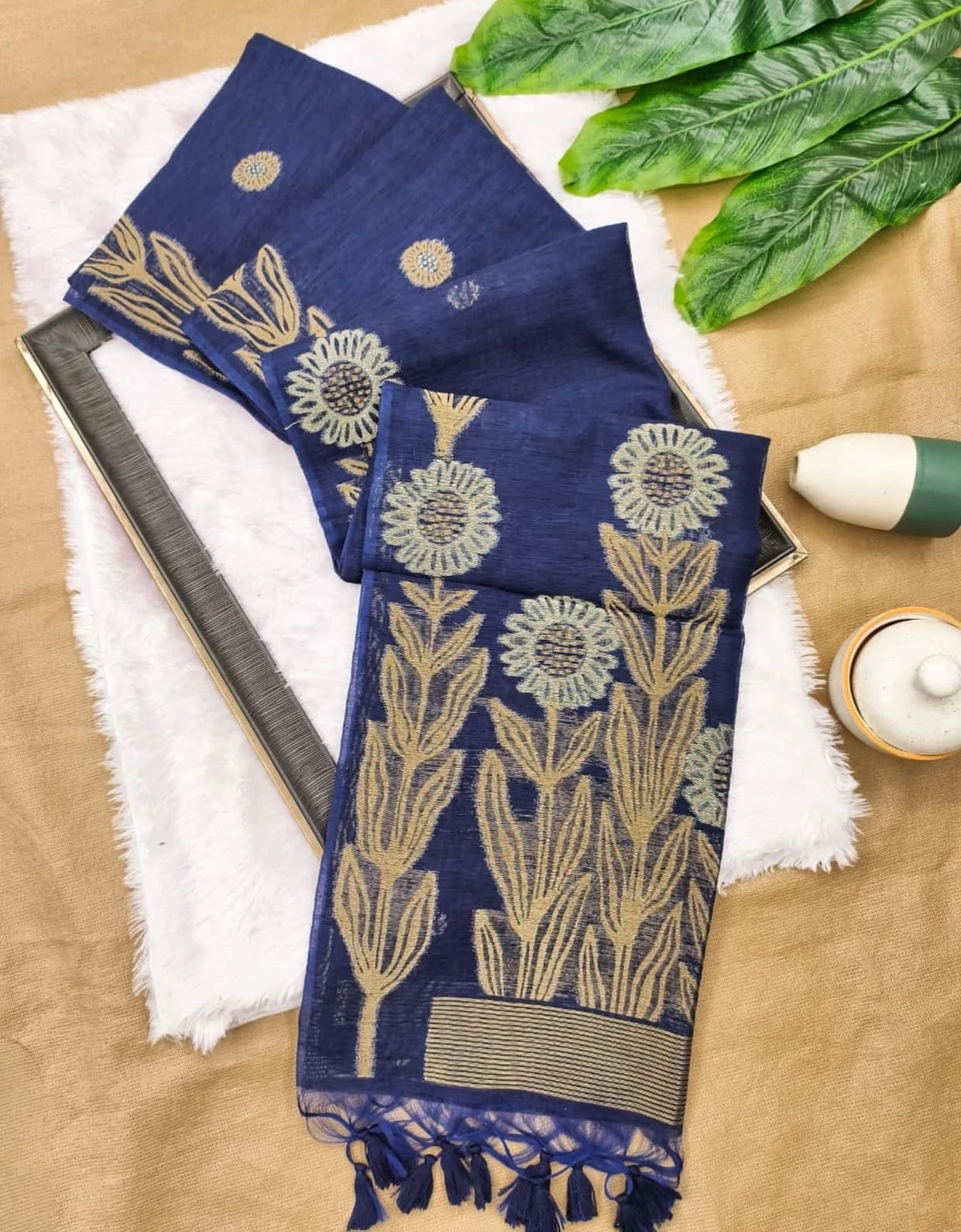 | Fabric | Soft Jute Linen Silk Saree Rich Zari Weaved Pallu |