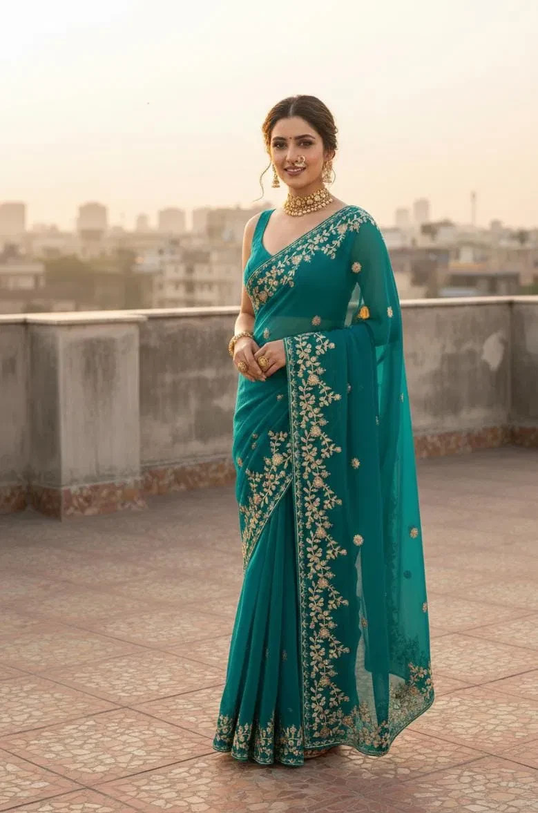 Product Name Vt 827 T Fandy Chiffon Embroidery Worked Fancy Saree Collection